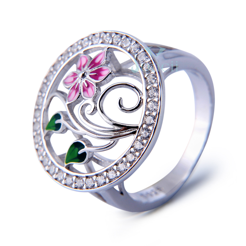 Jewelry RingsColorful Enamel Flower Rings Sterling Silver