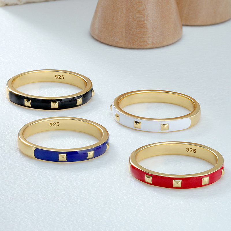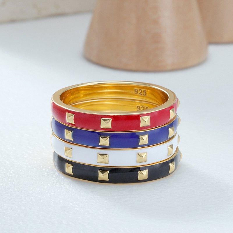 The colorful enamel rings are crafted in 925 sterling silver 18K gold plated with fine jewelry craft.