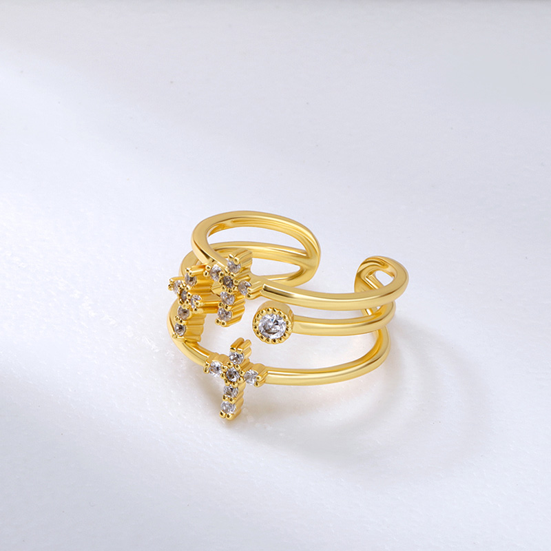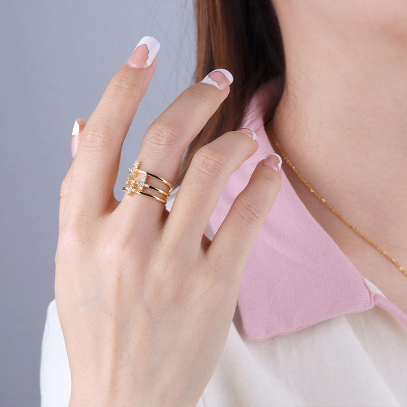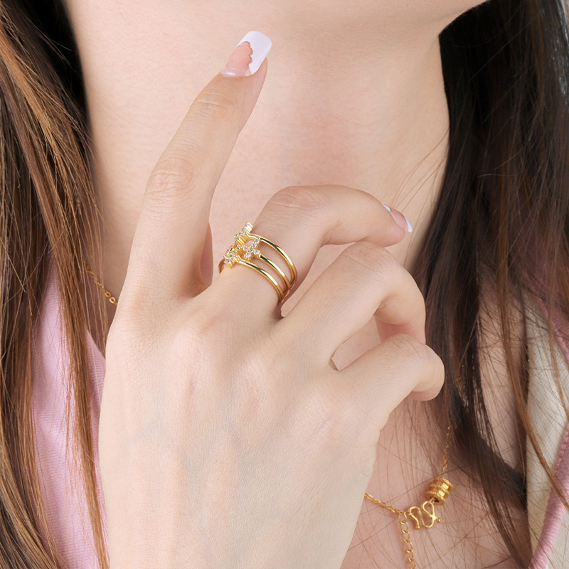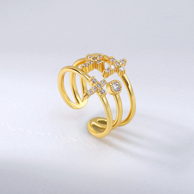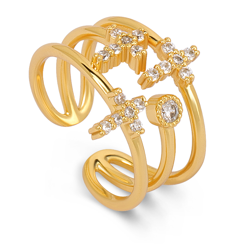 The diamond cuff ring is crafted in 925 sterling silver real gold plated with fine jewelry craft.
