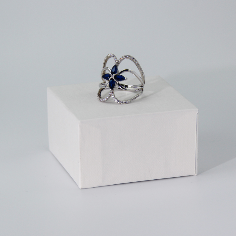 SilverCross Sterling Silver Ring with Blue Zircon 18K Gold Plated