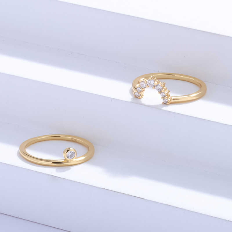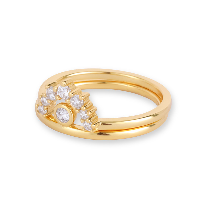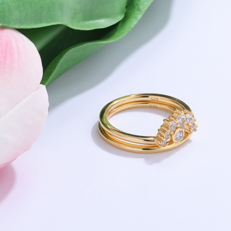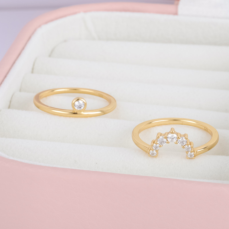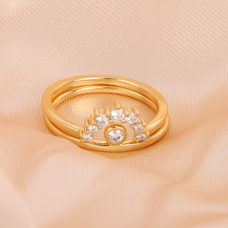 18K YellowCrown Zircon Silver Stacking Rings