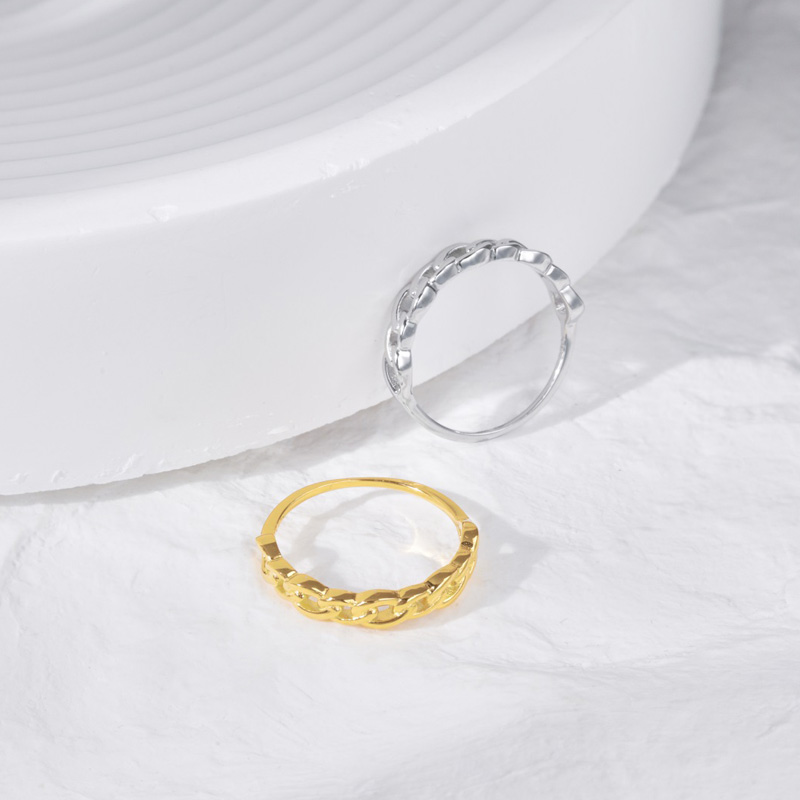 The cuban link ring is crafted in 925 sterling silver 18k yellow/white gold plated with fine jewelry craft.