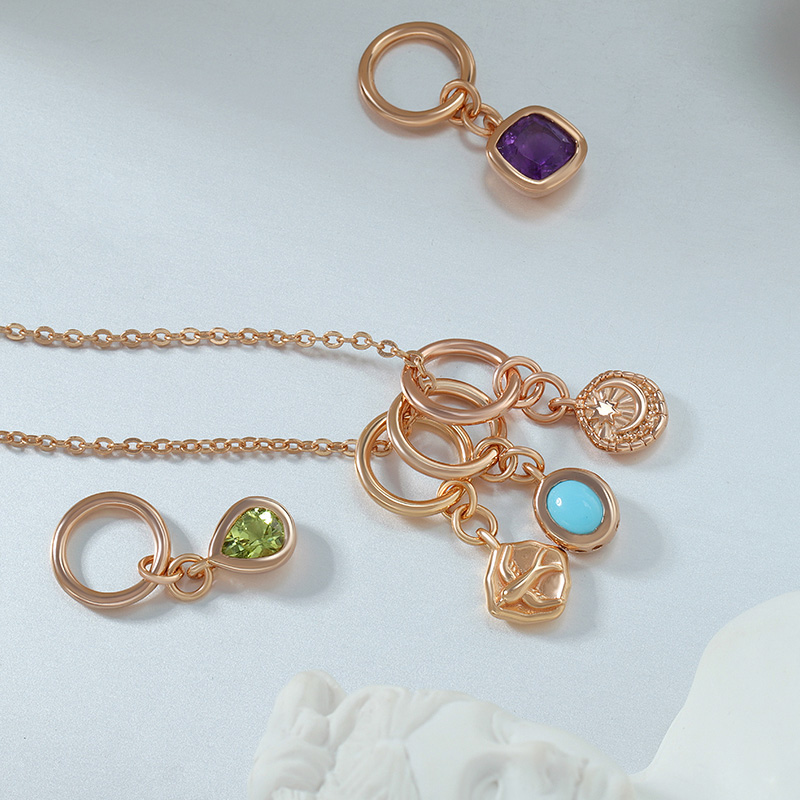 The Cushion Amethyst Charm is crafted in 925 sterling silver 18K gold plated with fine jewelry craft.
