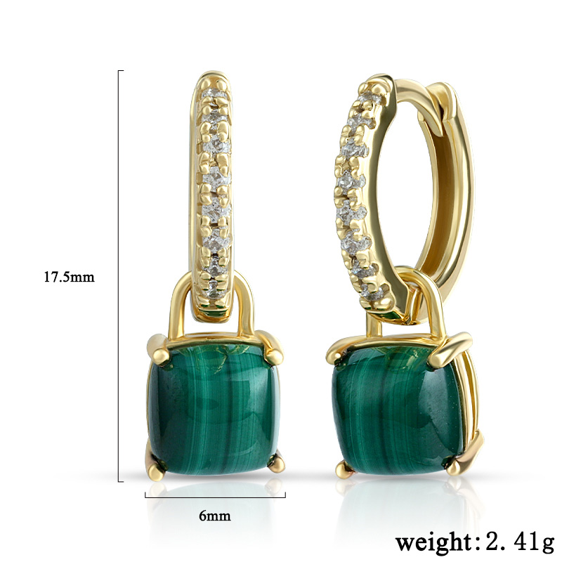 14K gold plate, Malachite cushion 6mm 2pc