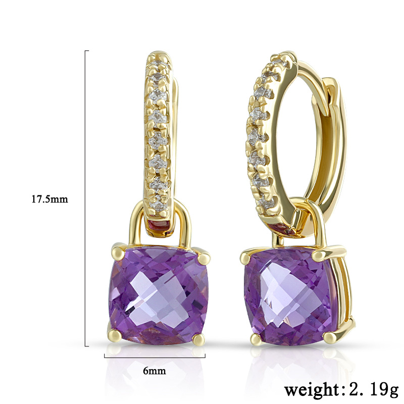 14K gold plate, Amethyst cushion 6mm 2pc