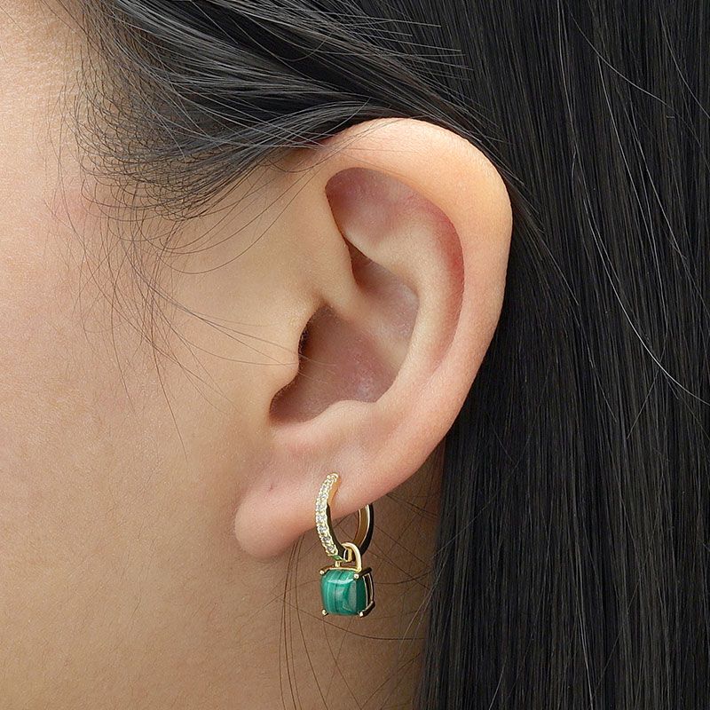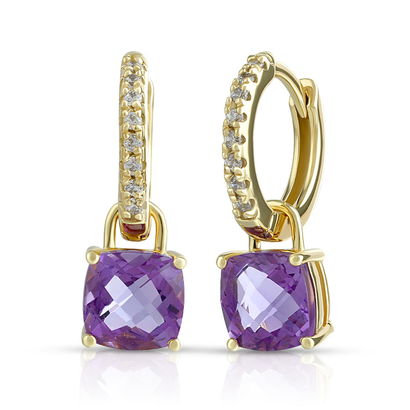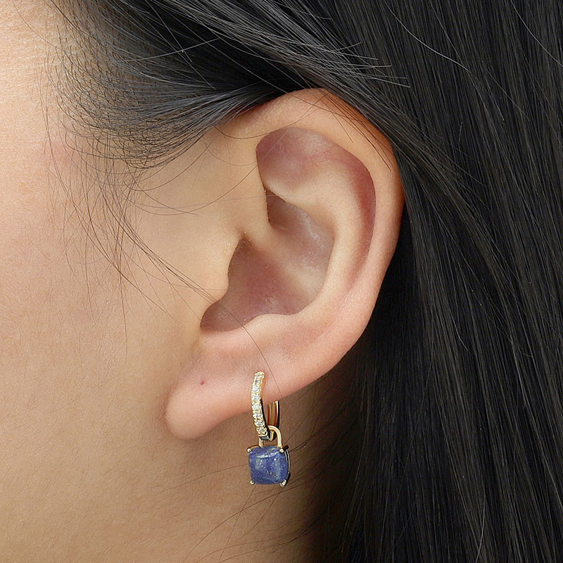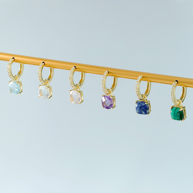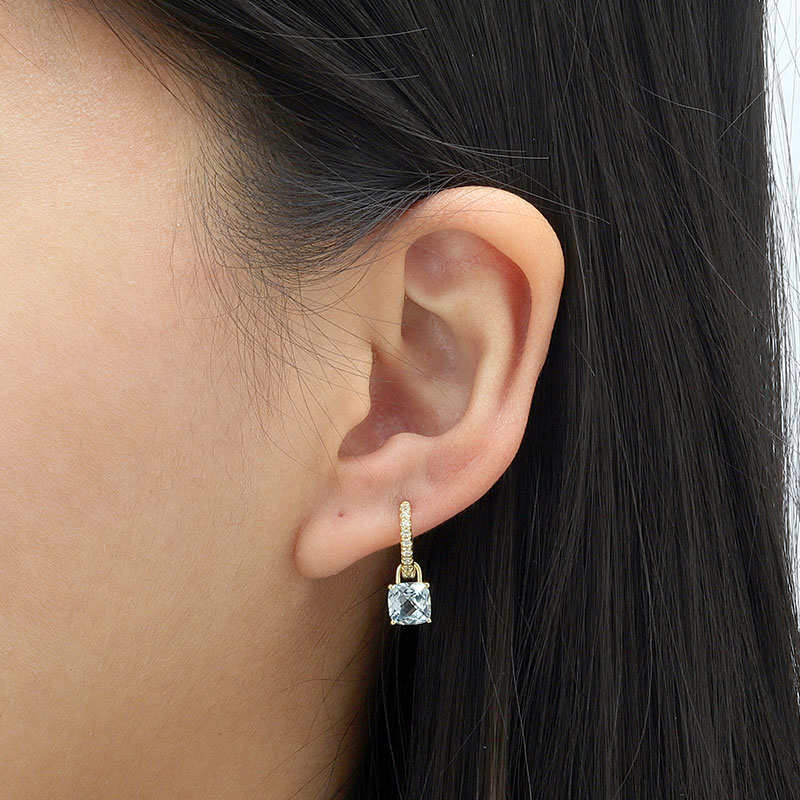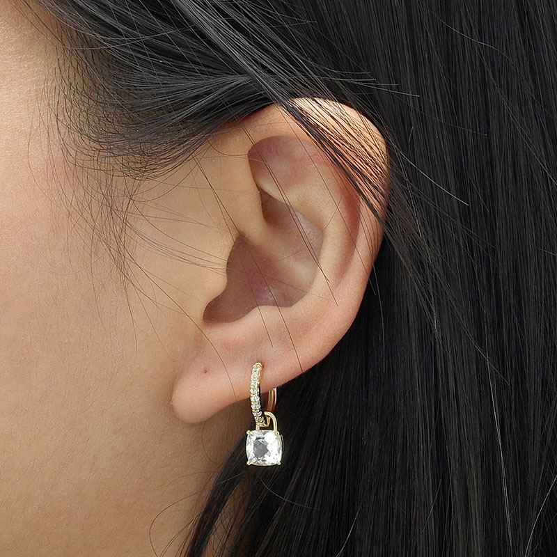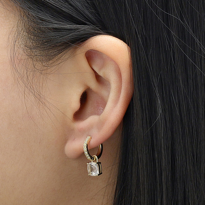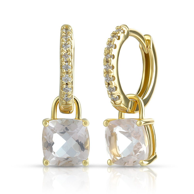 Cushion Cut Stone Hoop Earrings