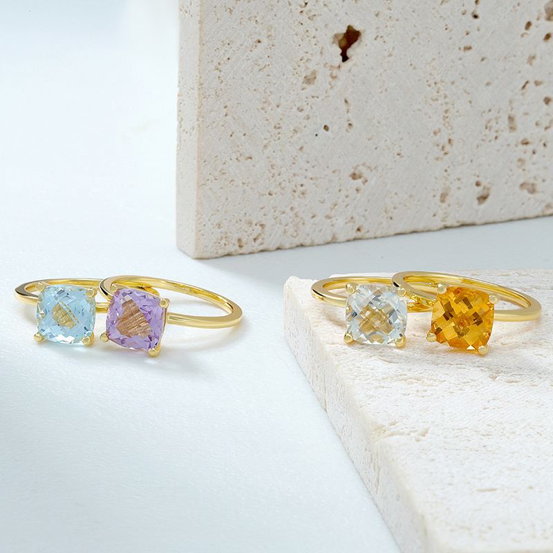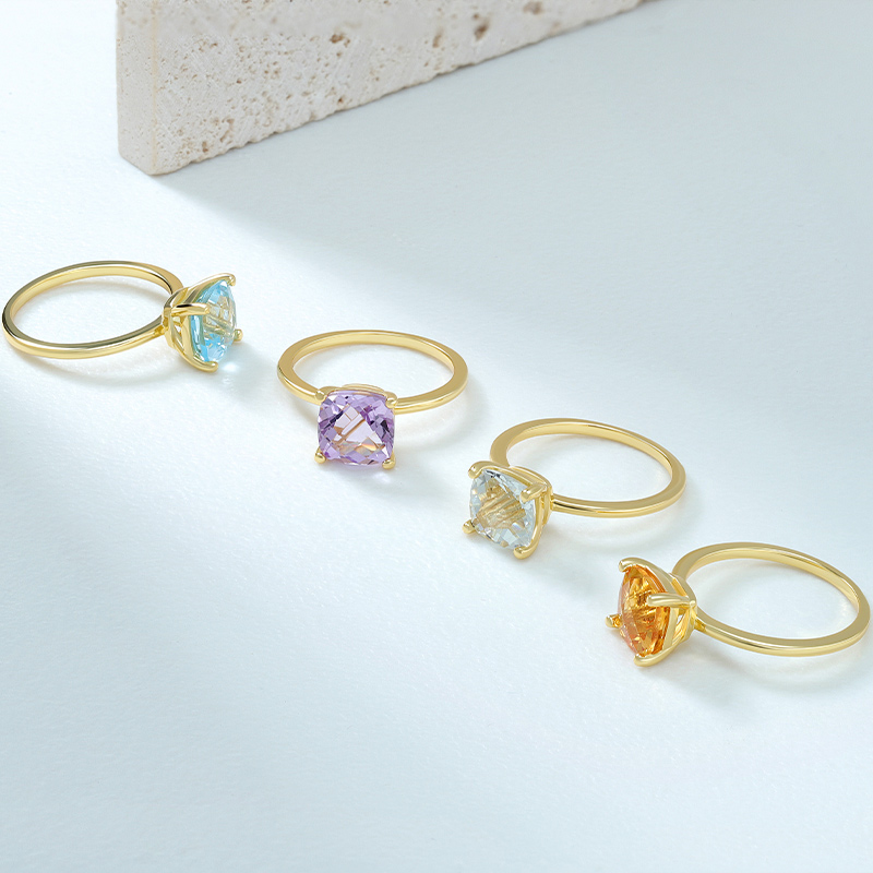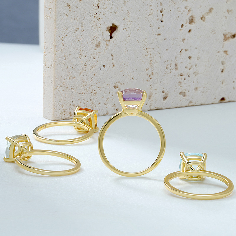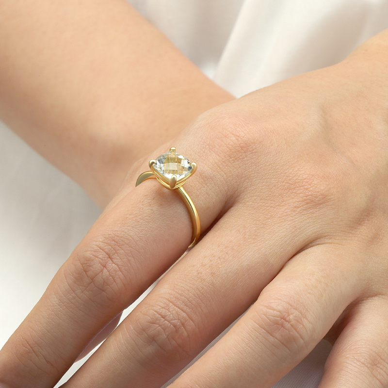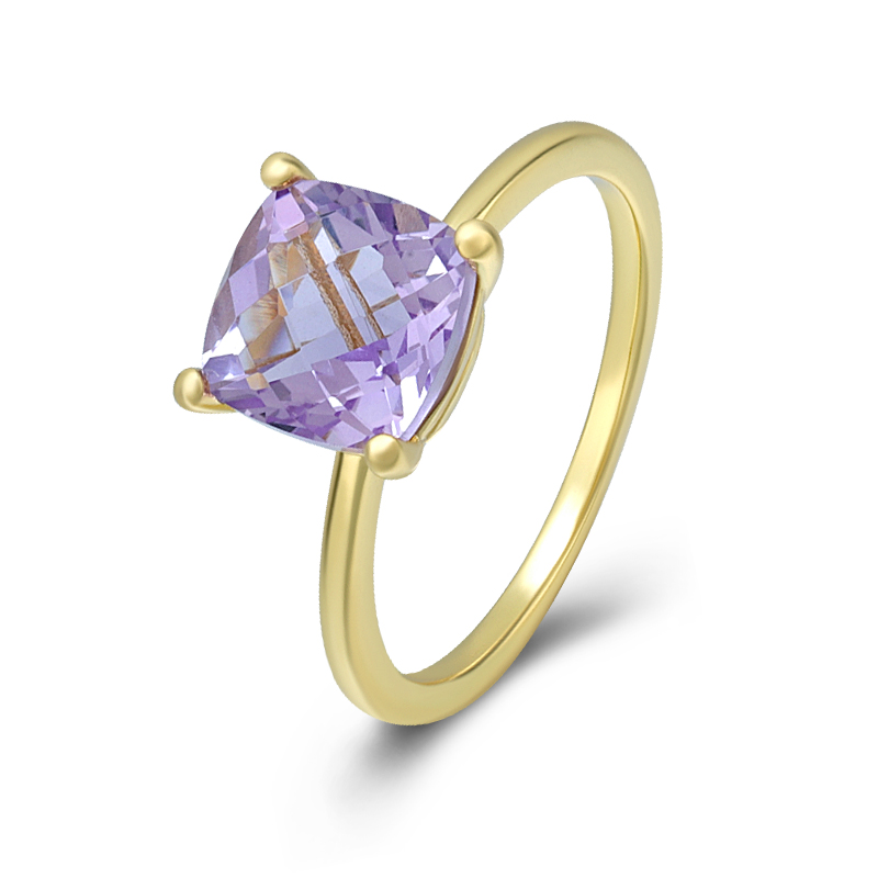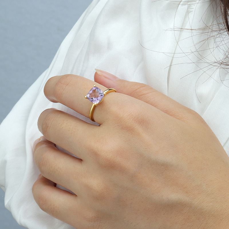 The Cushion Pink Amethyst Ring is crafted in 925 sterling silver gold plated with fine jewelry craft.