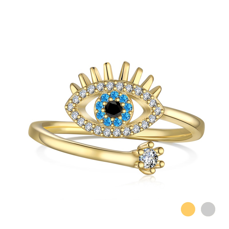 The evil eye jewelry ring is crafted in 925 sterling silver real 18K white/yellow gold plated with fine jewelry craft.
