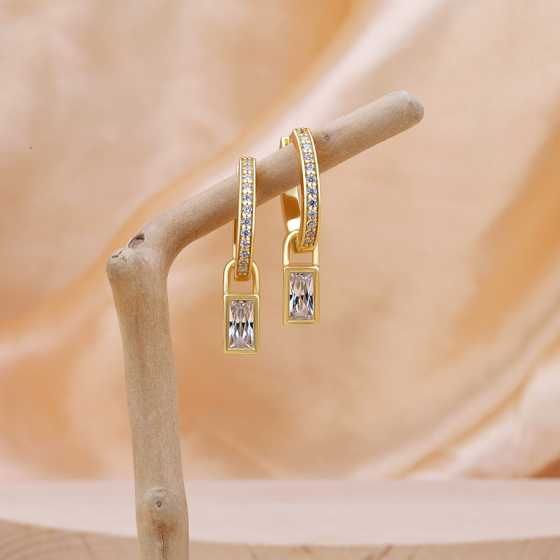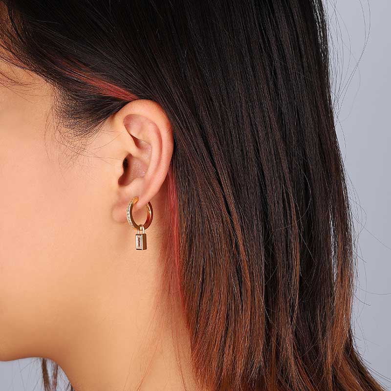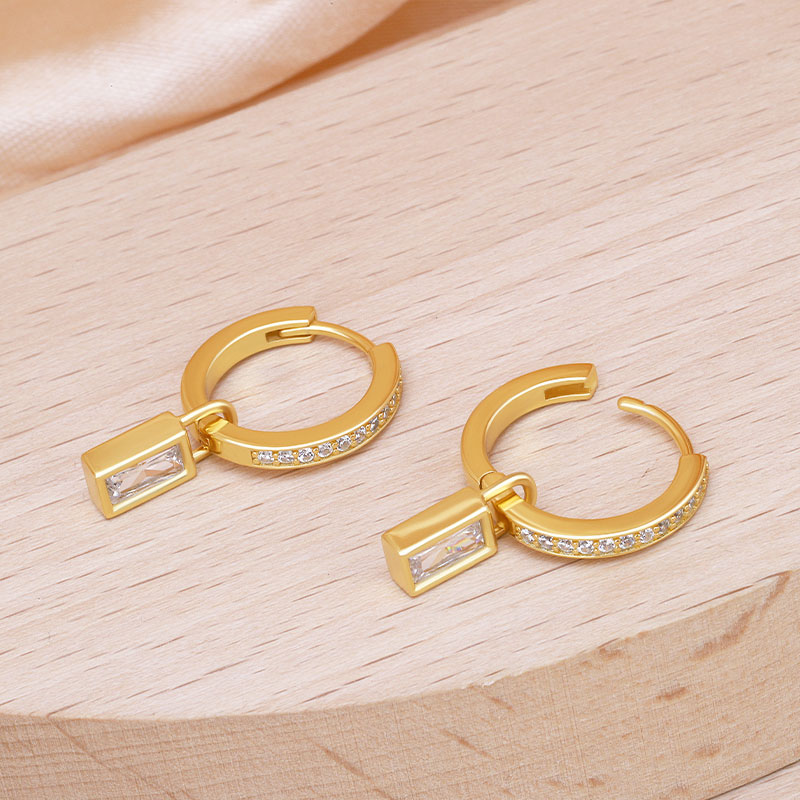CZ Hoop Earring Baguette Charm