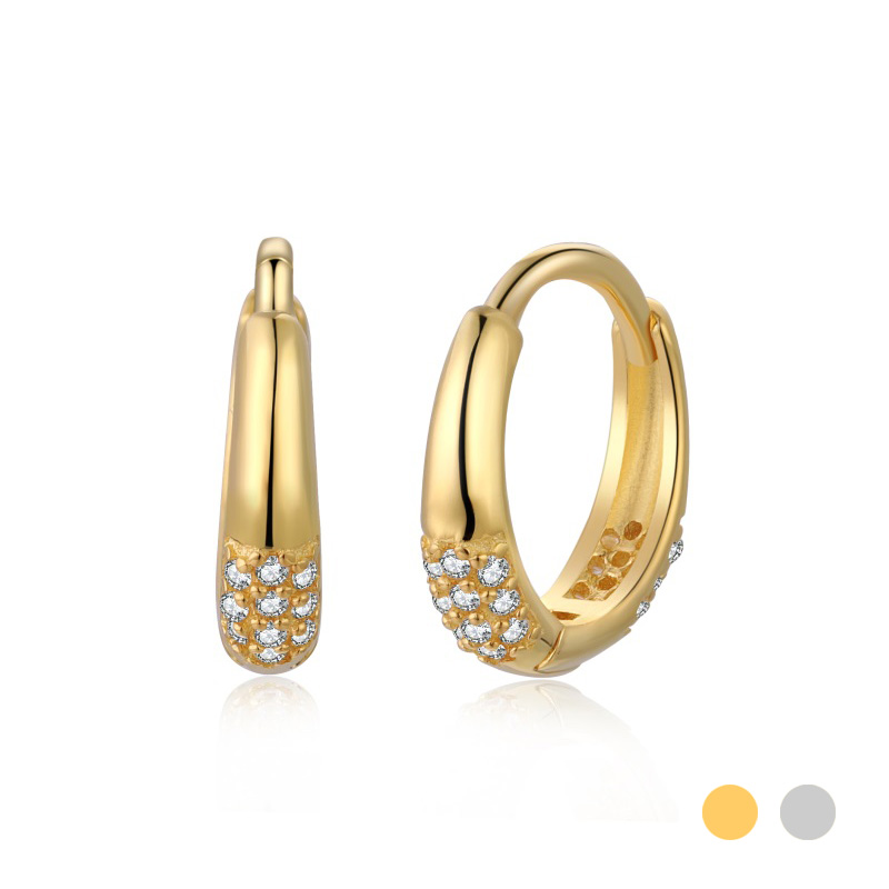 The cz pave hoop earrings are crafted in 925 sterling silver real 18K yellow/white gold plated with fine jewelry craft.