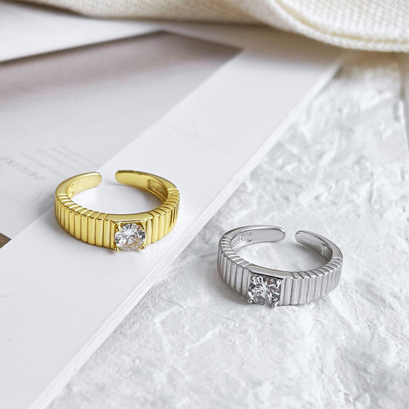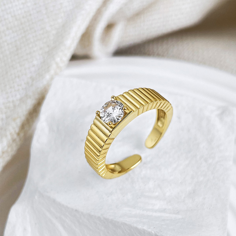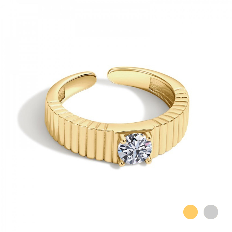 The ridged ring is crafted in 925 sterling silver real 18K white/Yellow gold plated with fine jewelry craft.