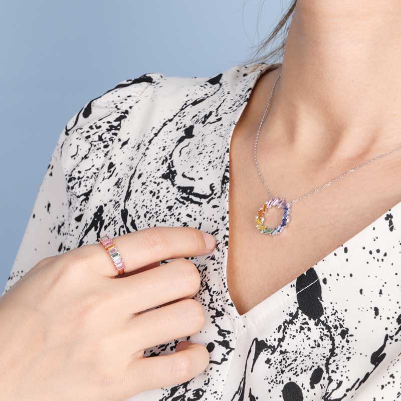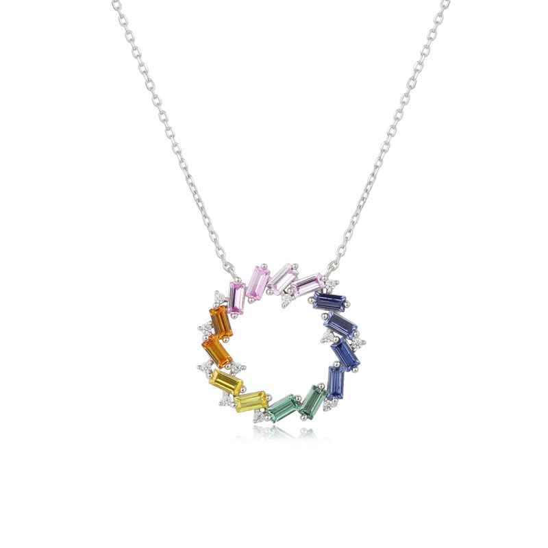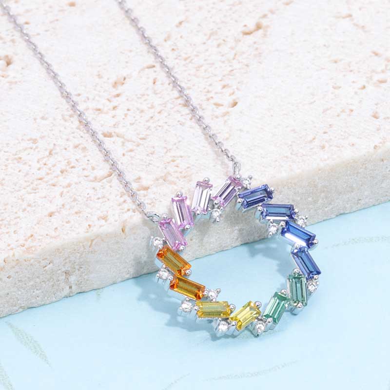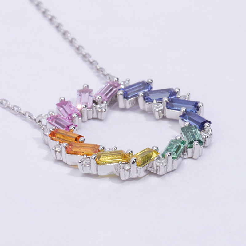 The dainty rainbow necklace is crafted in 925 sterling silver 18k white gold plated with fine jewelry craft.