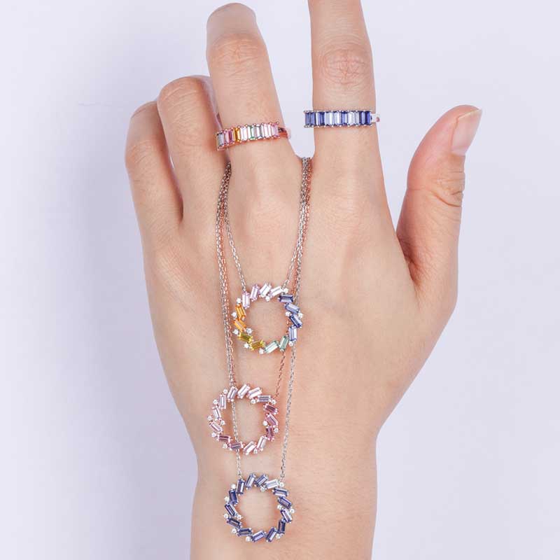 Pave set with colorful corundums, it is like a blessing from the sky, and each one has good wishes and brings happiness and luck to women. It's a great gift for your daughter or bestie.