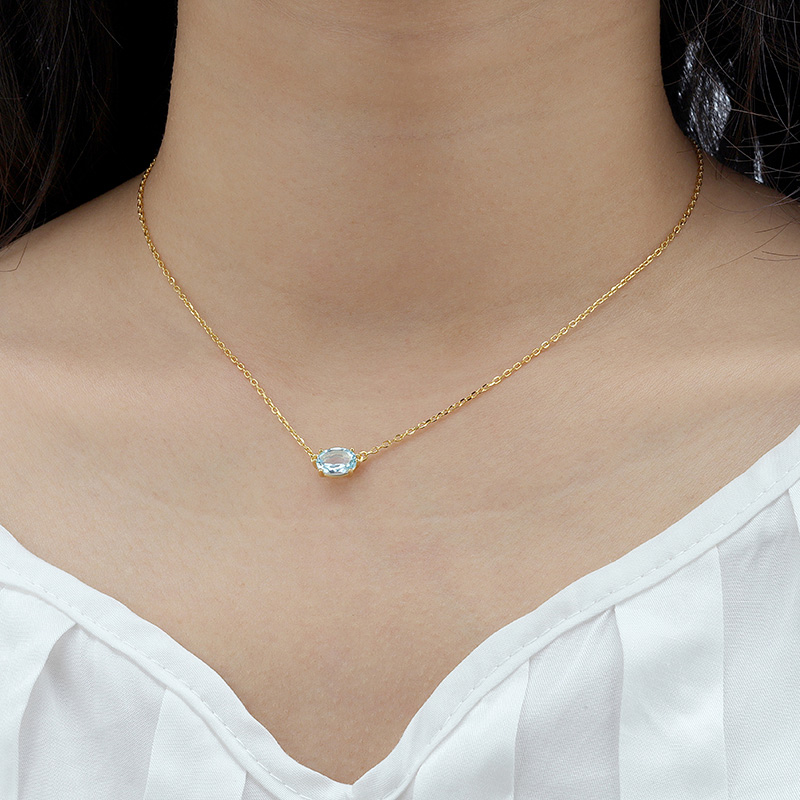The December Sky Blue Crystal Birthstone Necklace is crafted in 925 sterling silver gold plated with fine jewelry craft.