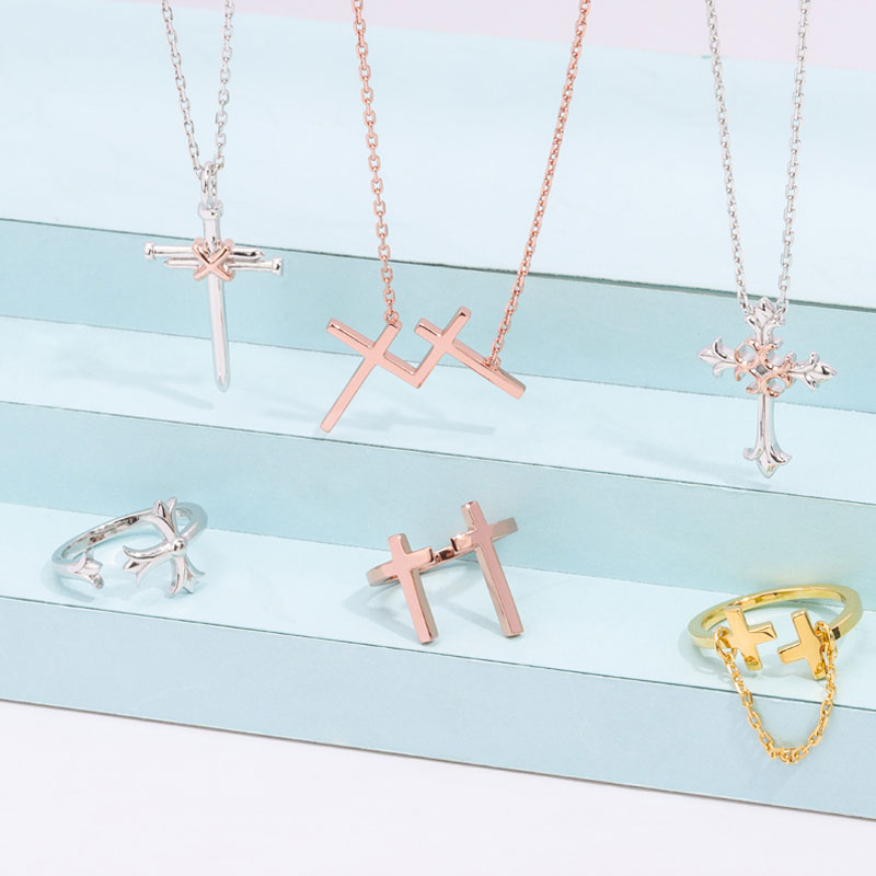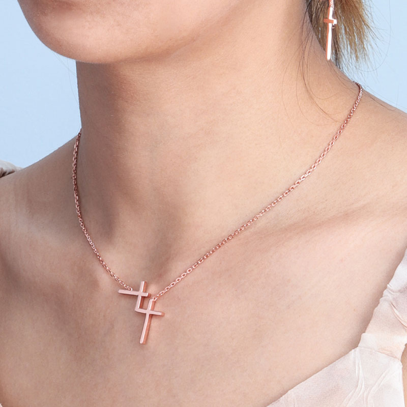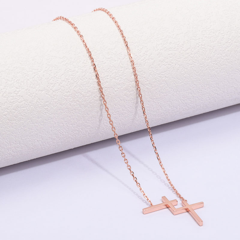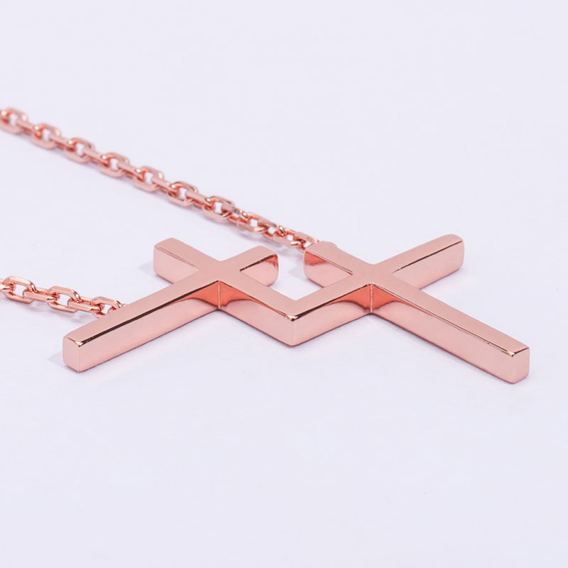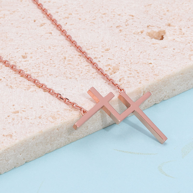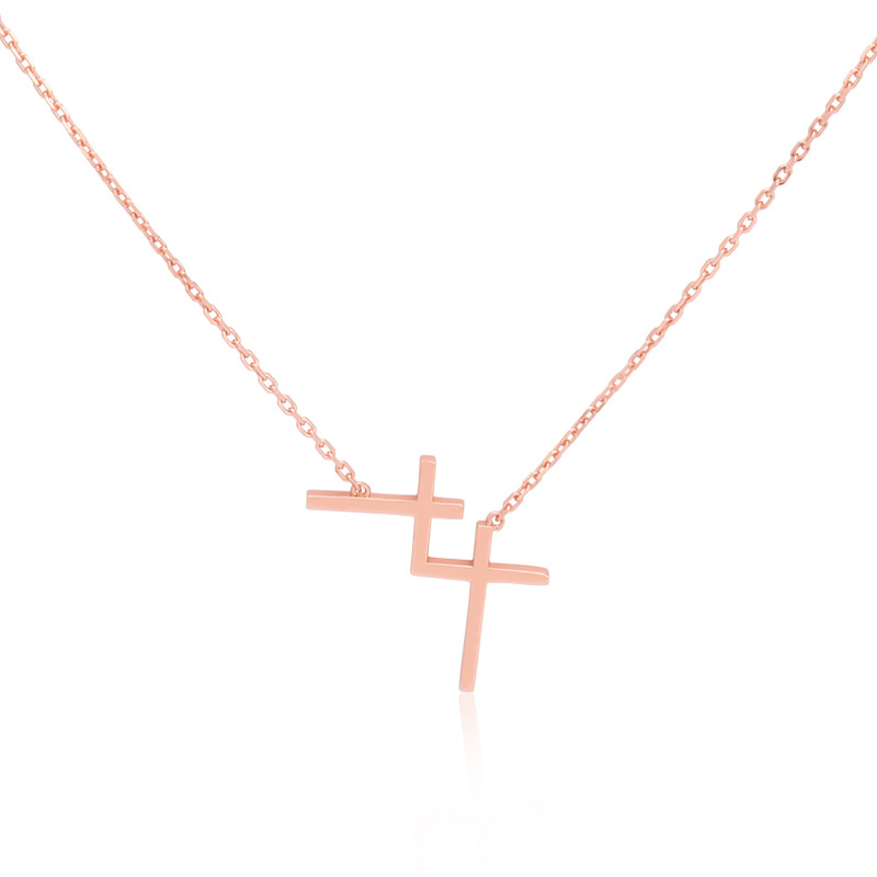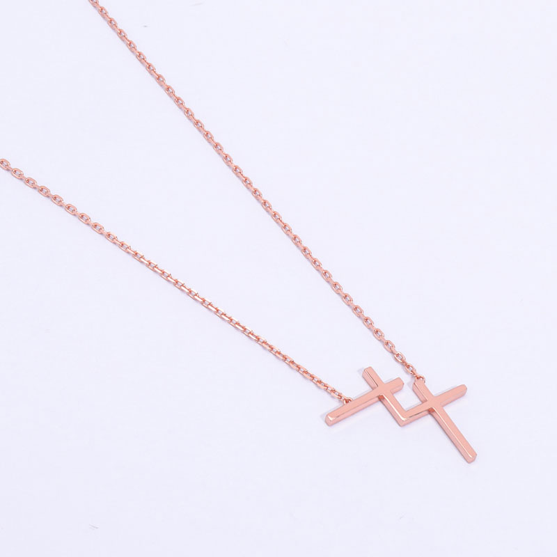 The double cross chain is crafted in 925 sterling silver 18k rose plated with fine jewelry craft.