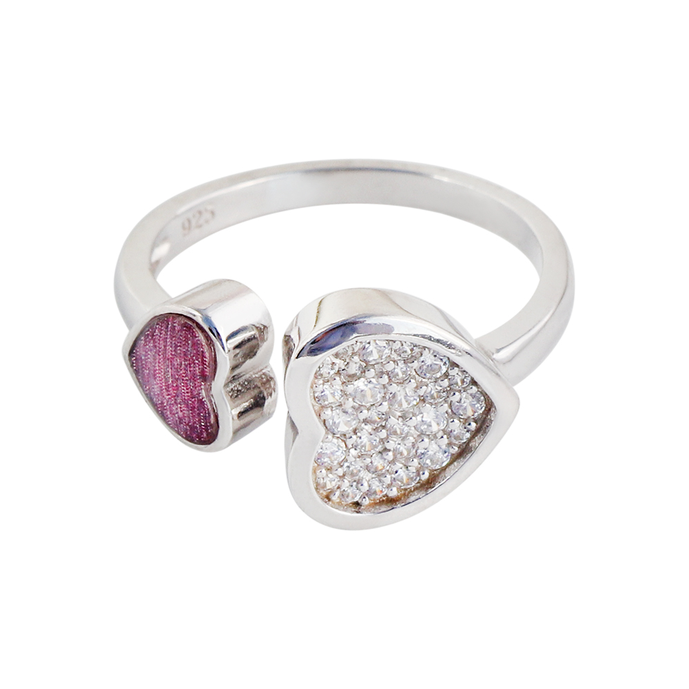 Double Heart Sterling Silver Ring 18k Gold Plated with CZ for Women.