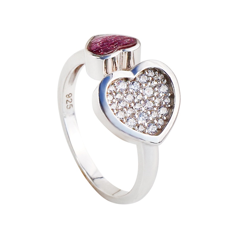 The ring is crafed in 925 sterling silver with 18k gold plated for high shine, giving the ring a delicate, elegant look. The red and white AAAA Cubic Zircons make the entire ring look lively and vivid. Double heart shows deep love. Women will fall in love with it.