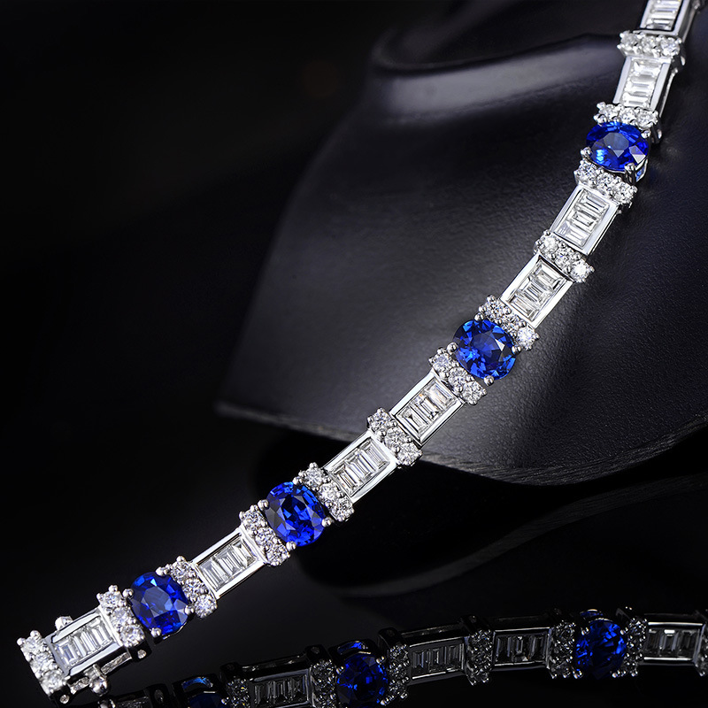3.69ctBlue Sapphire 18k Gold Bracelet Womens