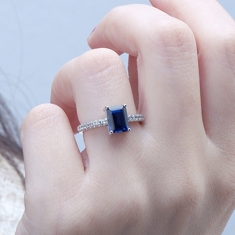 The Emerald Cut Silver Sapphire Engagement Rings are crafted in 925 sterling silver gold plated with fine jewelry craft.