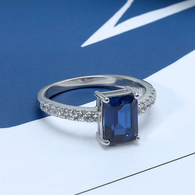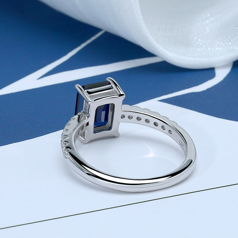Emerald Cut Silver Sapphire Engagement Rings