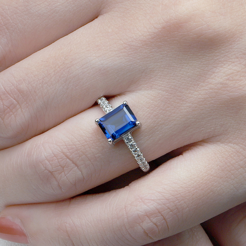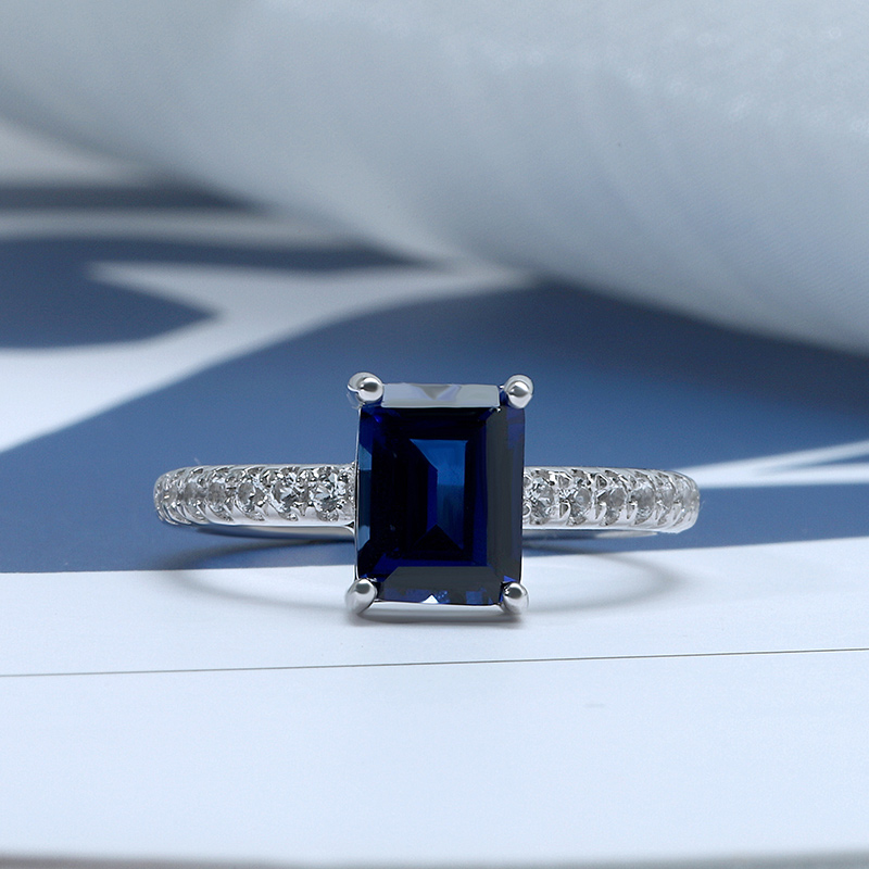 Stone: 6*8mm Emerald Cut Created Sapphire