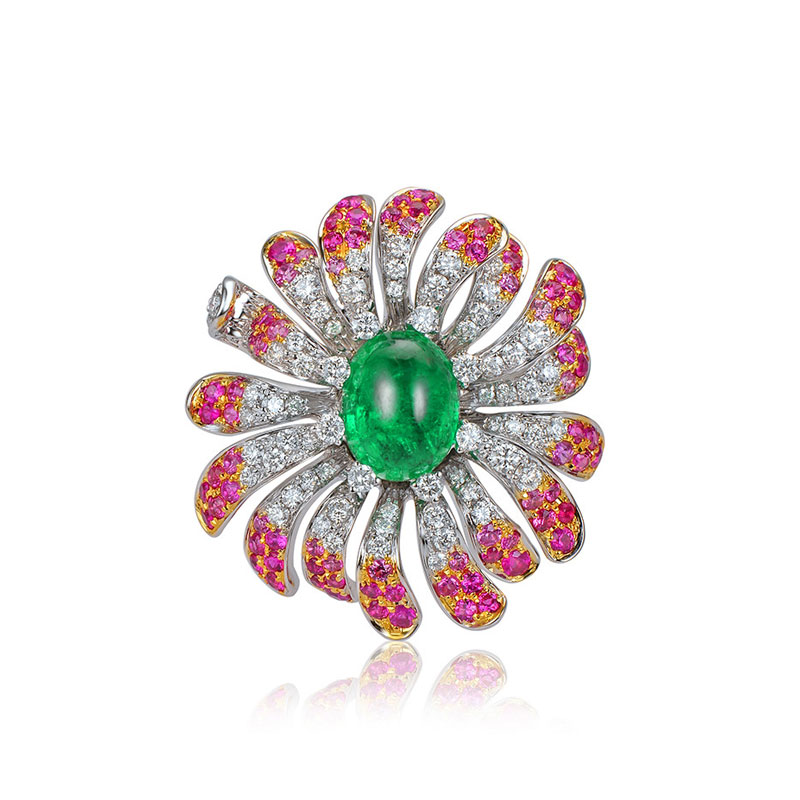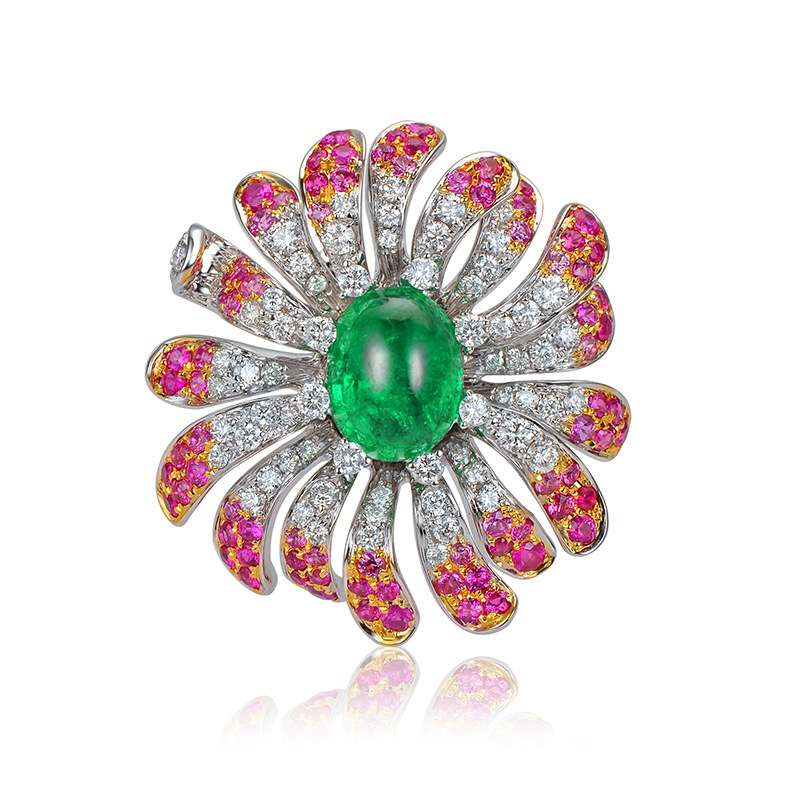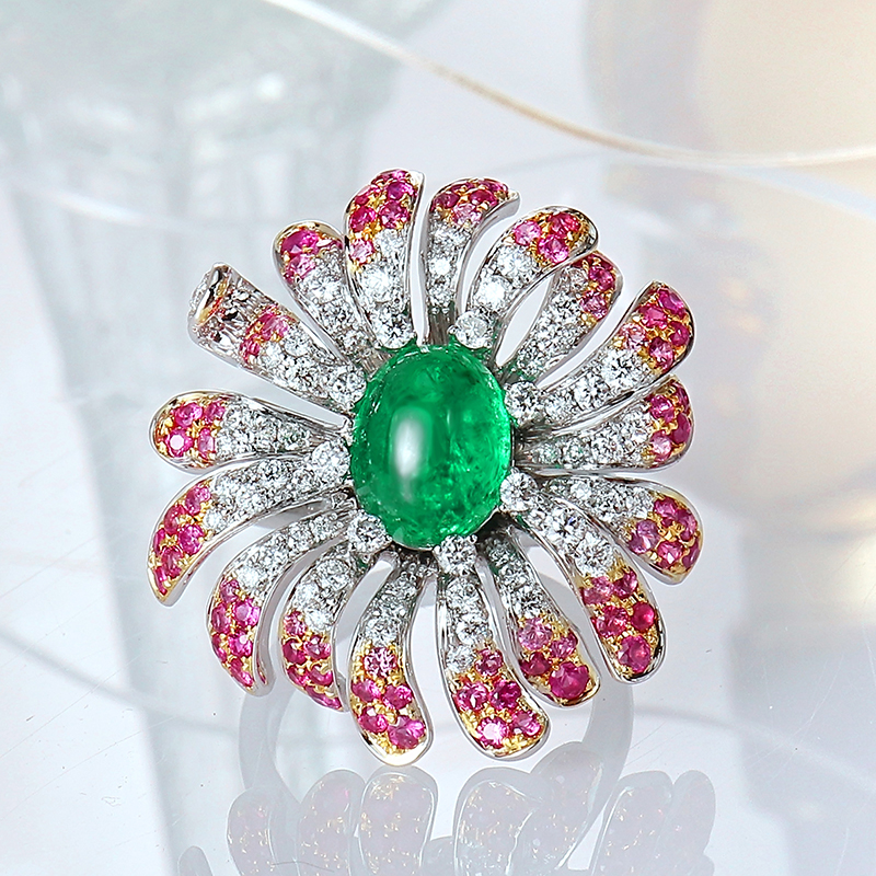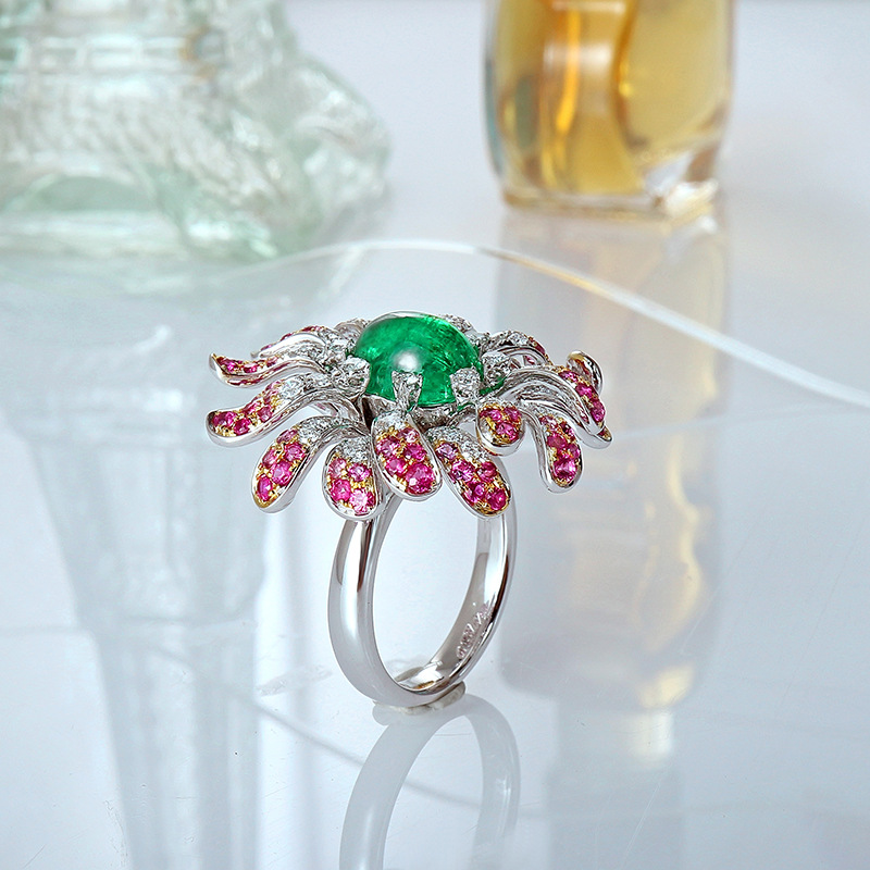 GreenEmerald Diamond Women Flower Ring