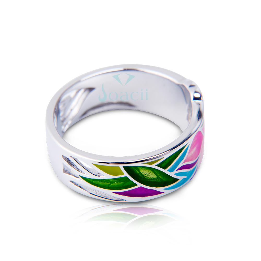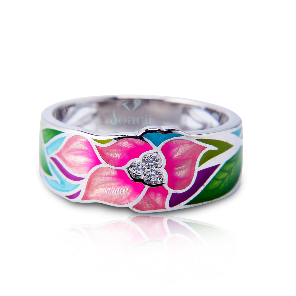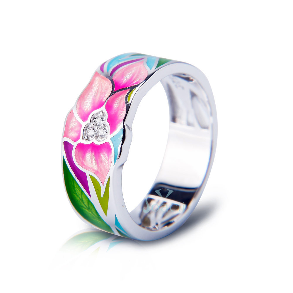 Flower Silver Jewelry Ring Bands enamel pink flower on the rings and the top class CZ zircon in the central of flower. Whole ring bands with 5 colors.