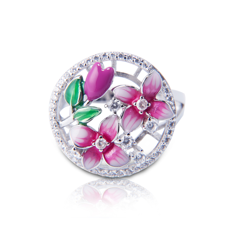 Featured enamel ring series, enamel colorful flowers with AAAA CZ, crafed in sterling silver, exquisite workmanship.
