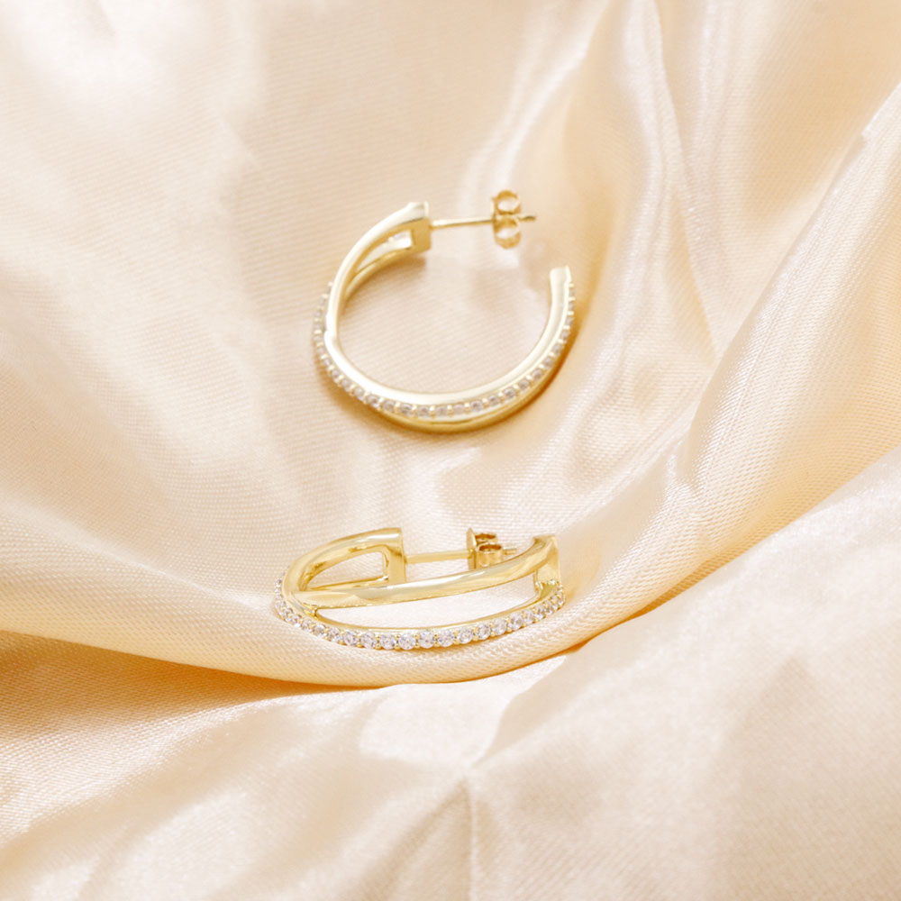 The cubic zirconia earrings are crafted in 100% high quality 925 sterling silver, 14k/18k gold plated. 100% gold thick plating, fine jewelry craft. It is in stock for wholesale.