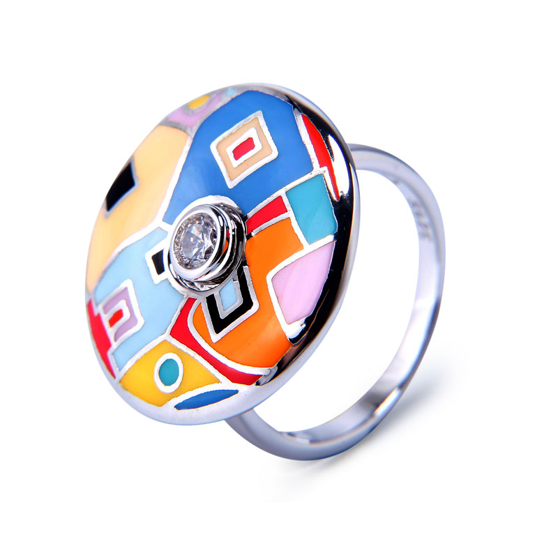 Enamel Jewelry Rings painting European style space design exploding your imagination, and an impeccable zircon in the central.