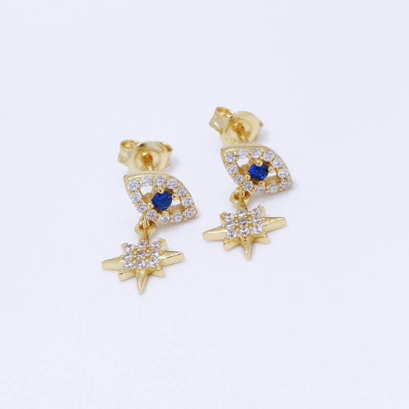 2.06gEvil Eye Stud Earrings Sterling Silver Pave Zircons Gold Plated for Women