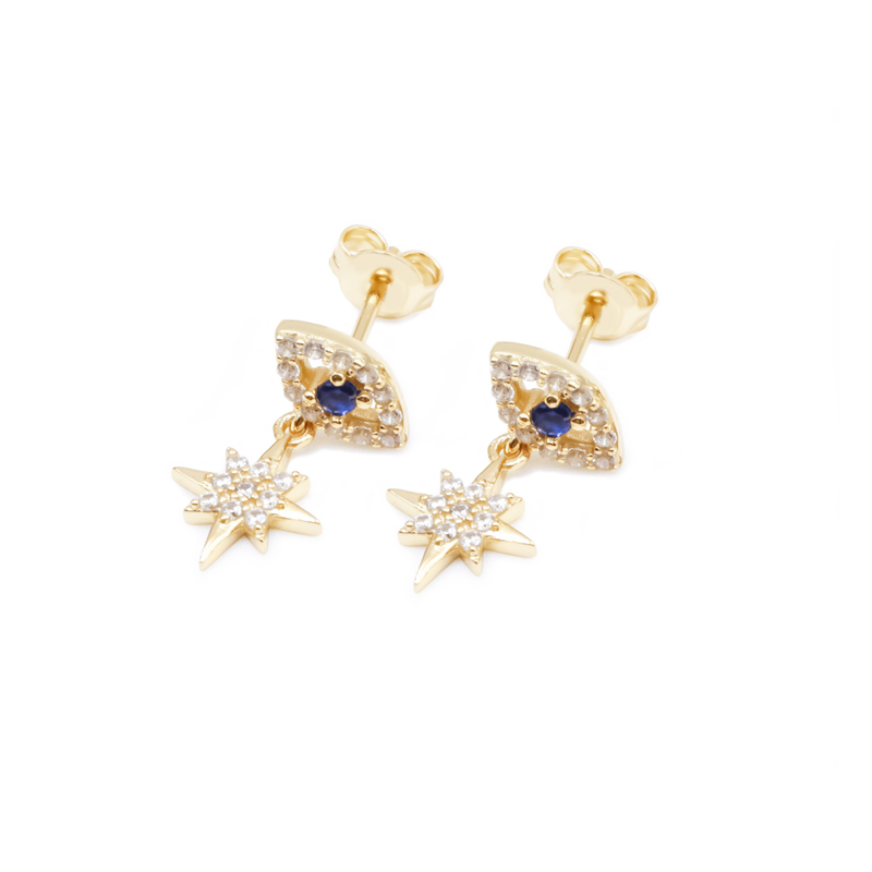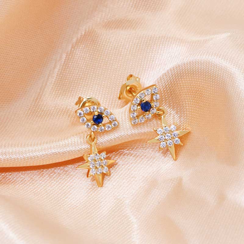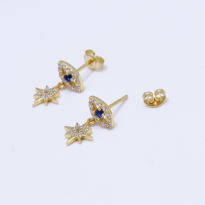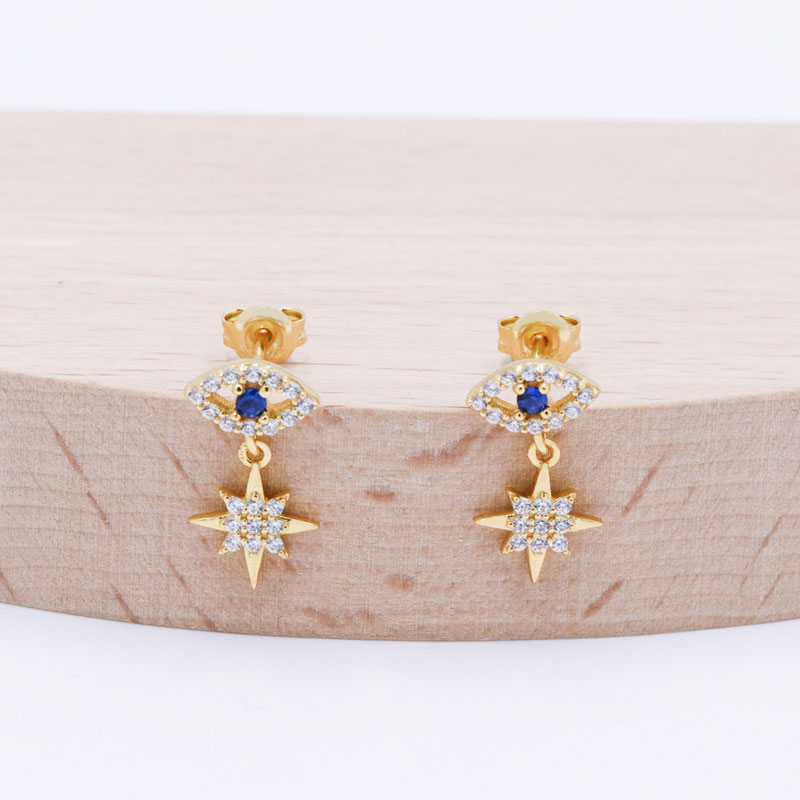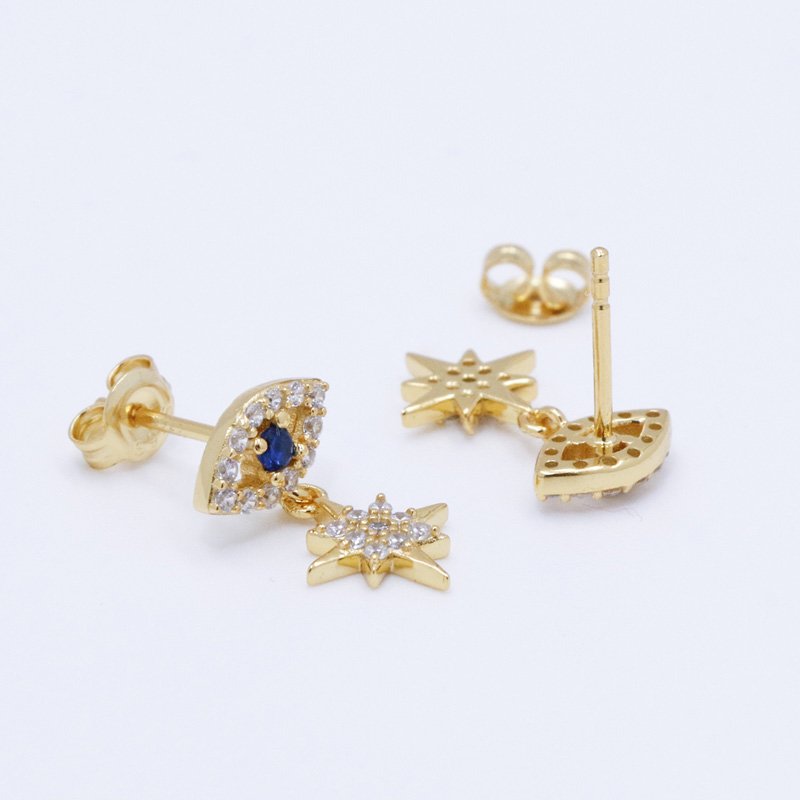 The evil eye stud earrings are crafted in 100% high quality 925 sterling silver, 14k/18k gold plated. 100% gold thick plating, fine jewelry craft.