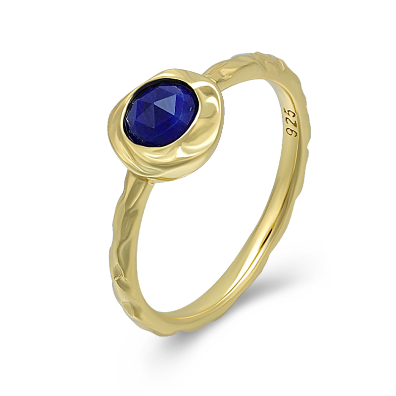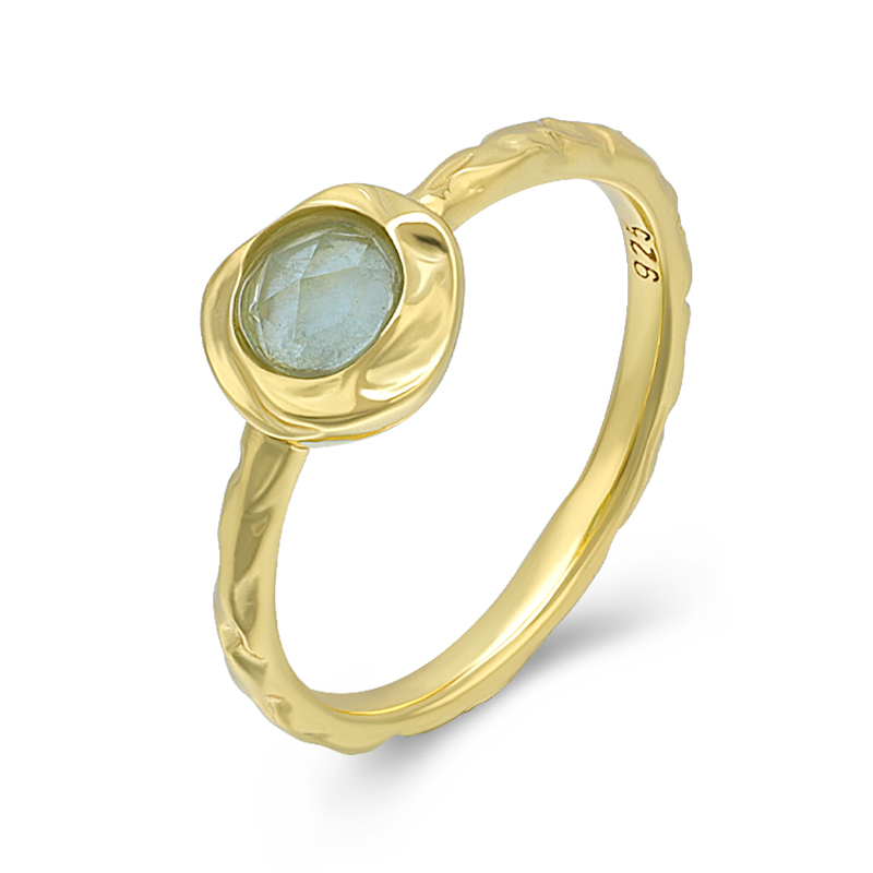 The faceted aquamarine ring is crafted in 925 sterling silver 18K gold plated with fine jewelry craft.