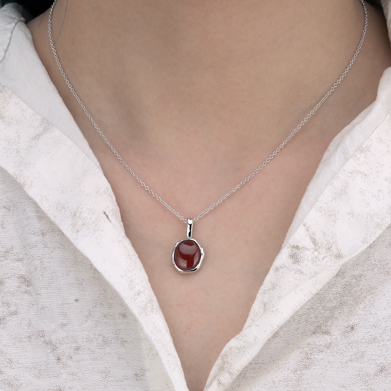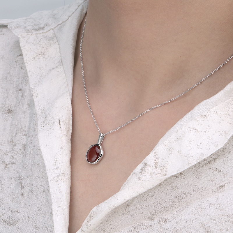 The Faceted Cut Irregular Garnet Silver Necklace is crafted in 925 sterling silver 18k gold plated with fine jewelry craft.