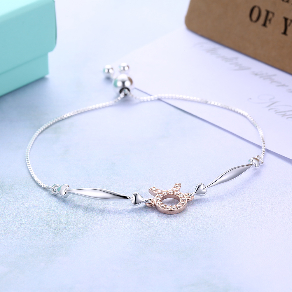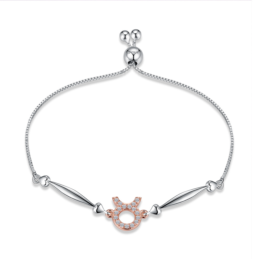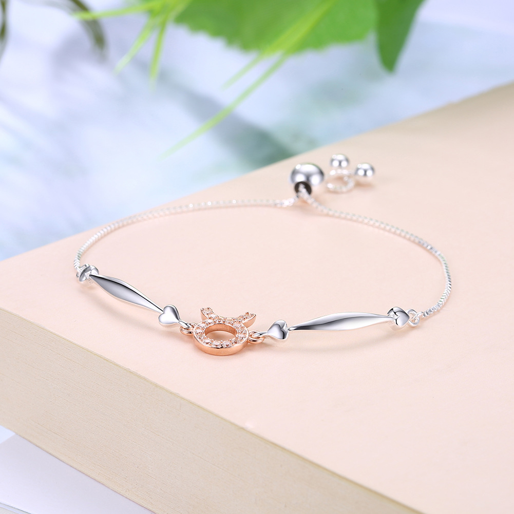 WhiteThis sterling silver chain bracelet is designed for ladies. There are AAA CZ stones in the center with rose gold plated around. You can wear it to participate in party. It is fashion and nice.