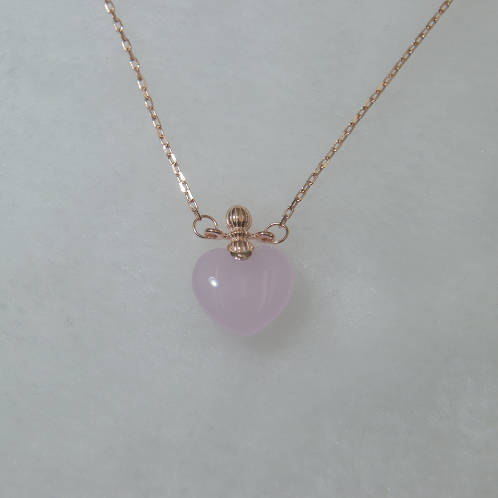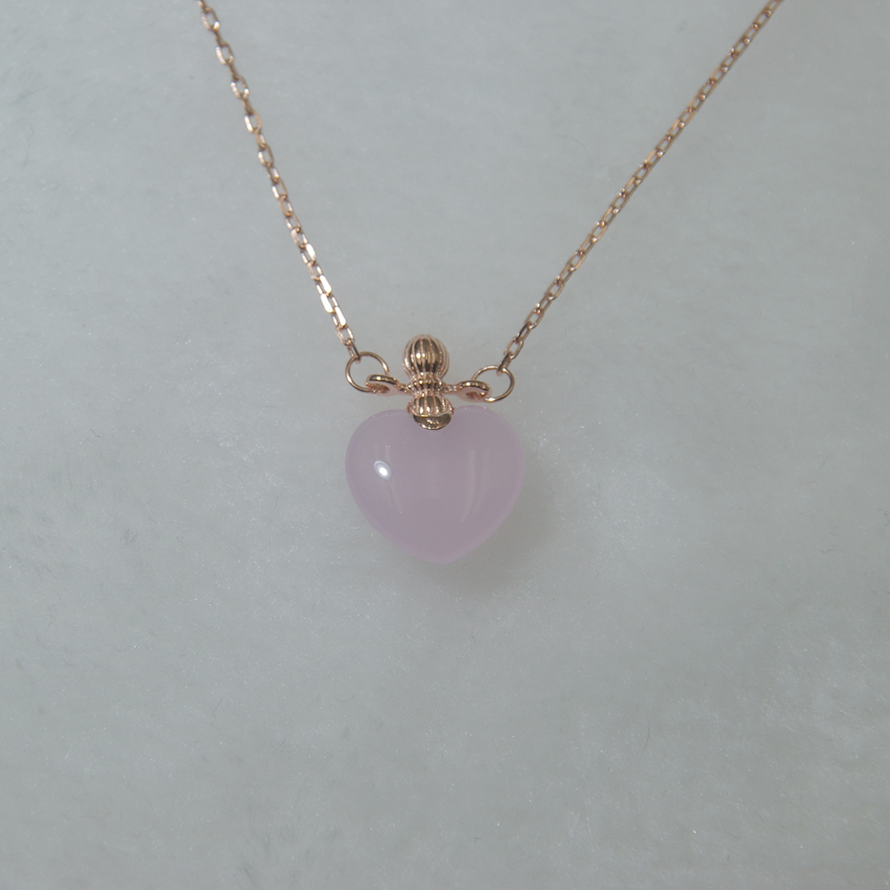 This women's silver chain necklace is plating 18K rose gold.Pendant is rose quartz in heart shape. Main material is 925 sterling silver. Pink heart design is very fancy.