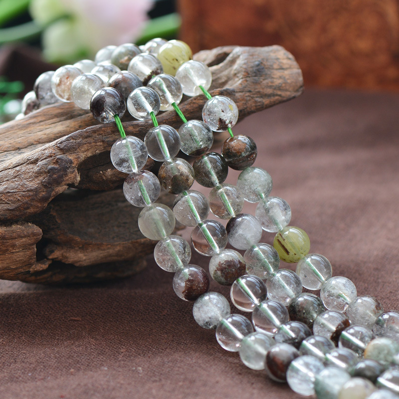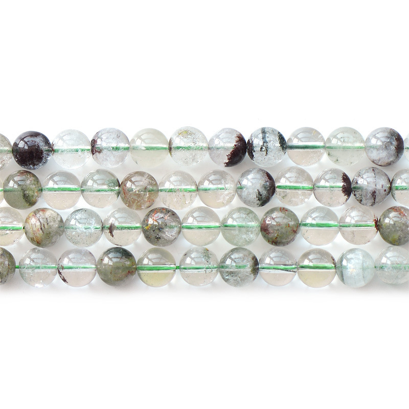 Natural green round phantom crystal loose gemstone beads with fancy colors for jewelry. Different sizes from 6mm to 12mm for you to choose. All gemstone beads are high quality without flaw.
