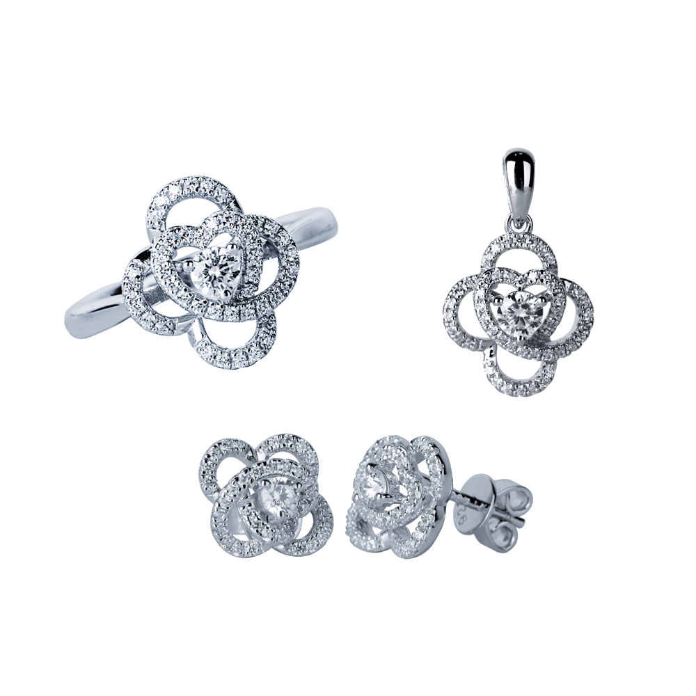 Jewelry Set are the medium for wedding. Joacii designer make the leaf and the heart design by one streamlined 925 silver. To be excellent, the leaf and heart can set to be a whole camellia.