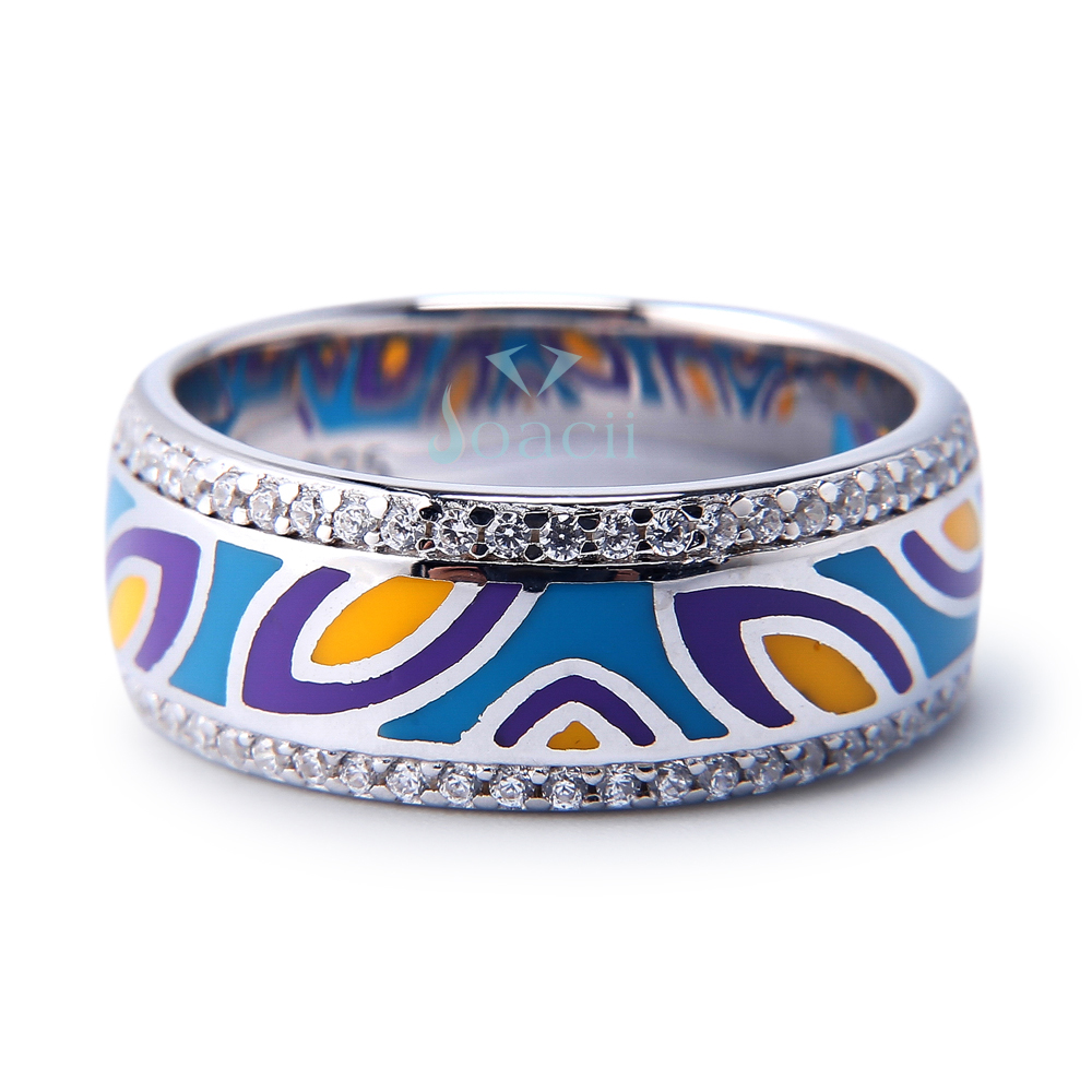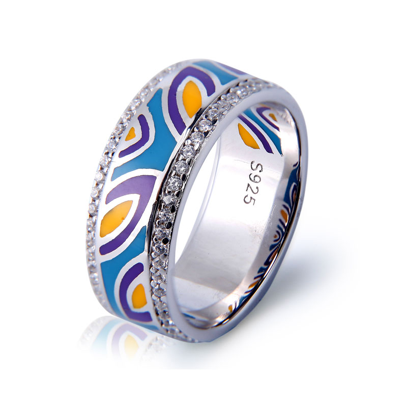Wholesale multi-color enamel Jewelry silver rings pave setting with many little AAA CZ zircon stones.