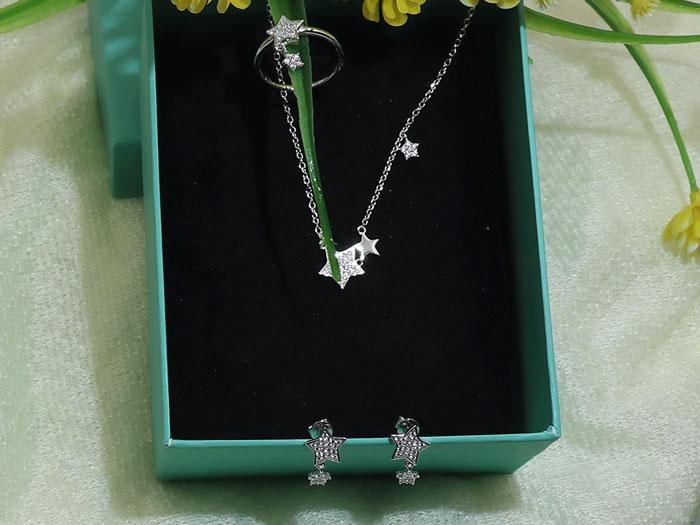 The whole jewelry set with simply design but more fashionable in market. S925 sterling silver to be basic material and bezel setting with AAAA CZ stone. The jewelry set complete bring out youth and nature.