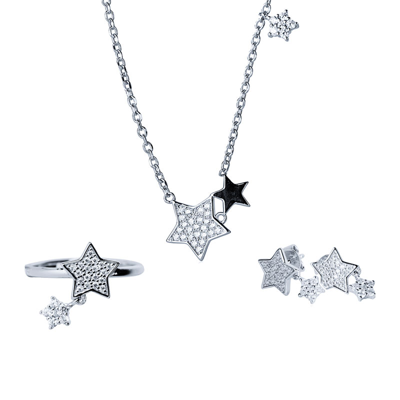 Silver WhitePentagram Fashion Silver Jewelry Set