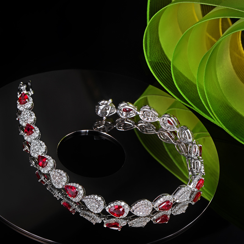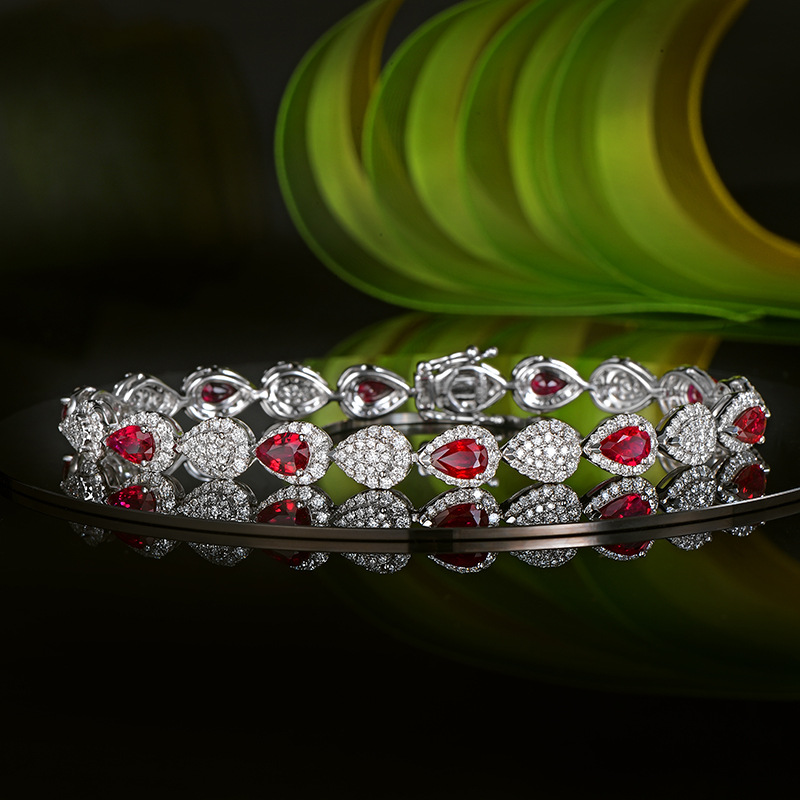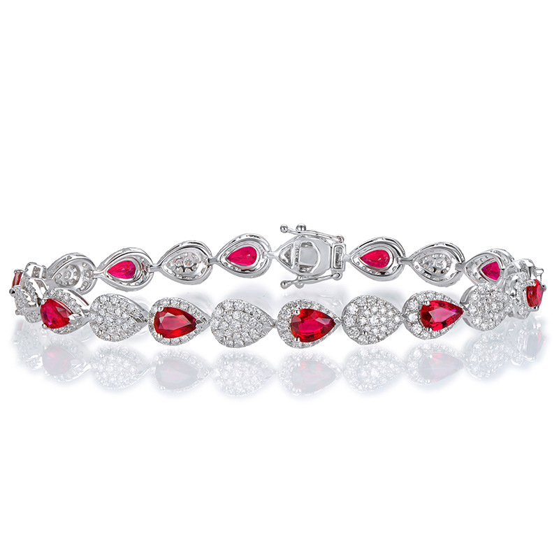 The women bracelets is made of 18K solid gold and setting with 2.18ct ruby with white gold color.