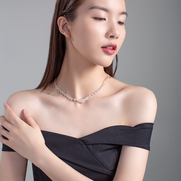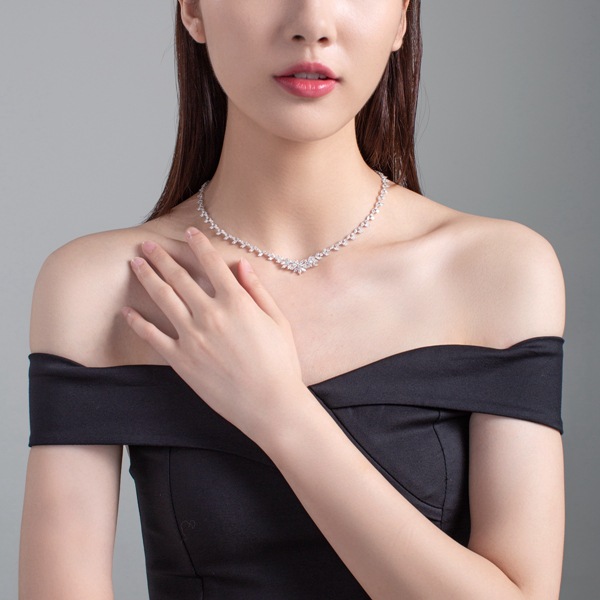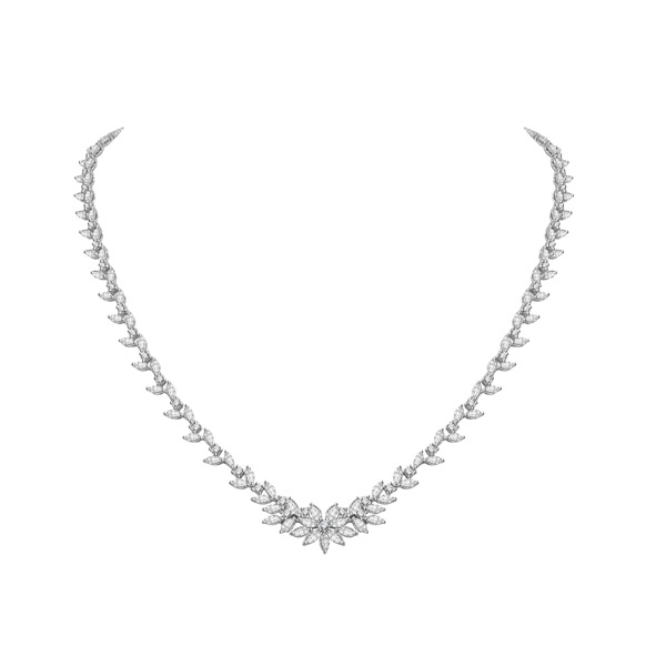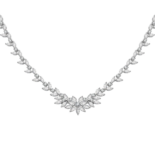 The fine jewelry diamond women necklace pave setting with cluster diamond as flower in center.