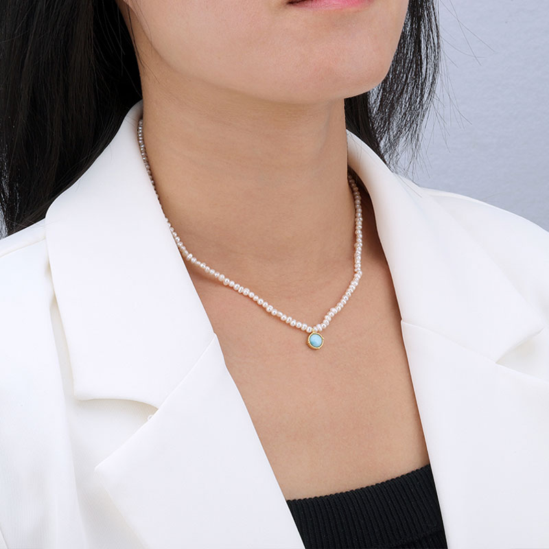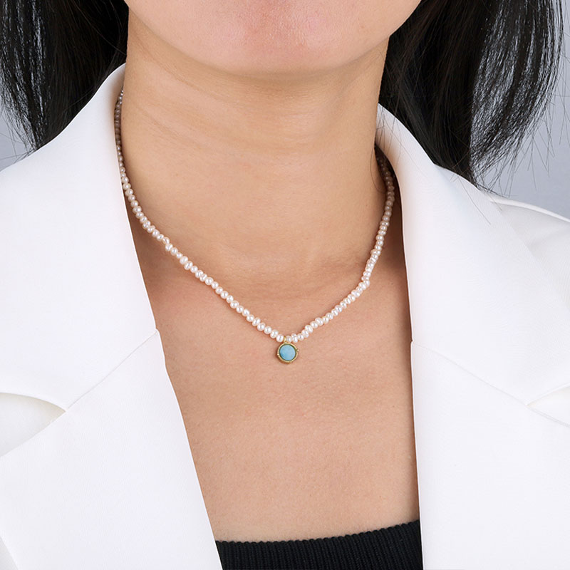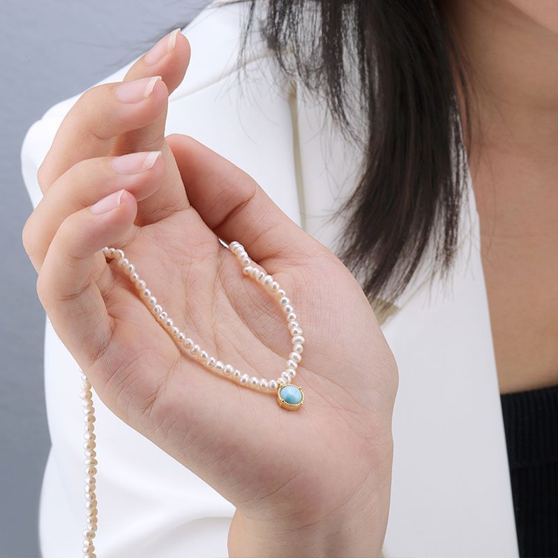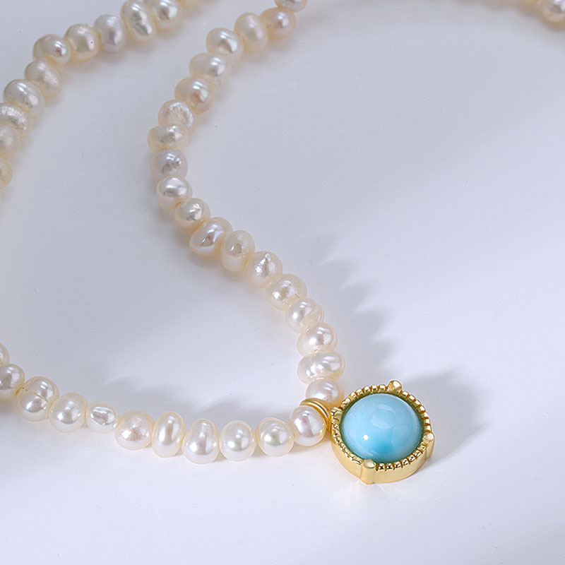 Freshwater Pearl/Larimar StoneMaterial Type: