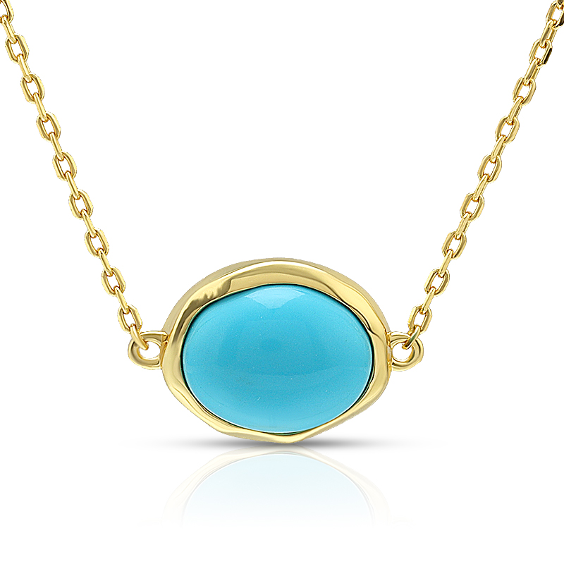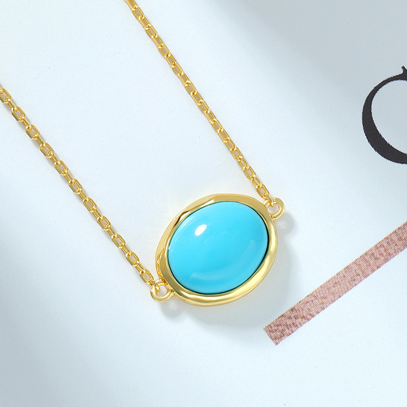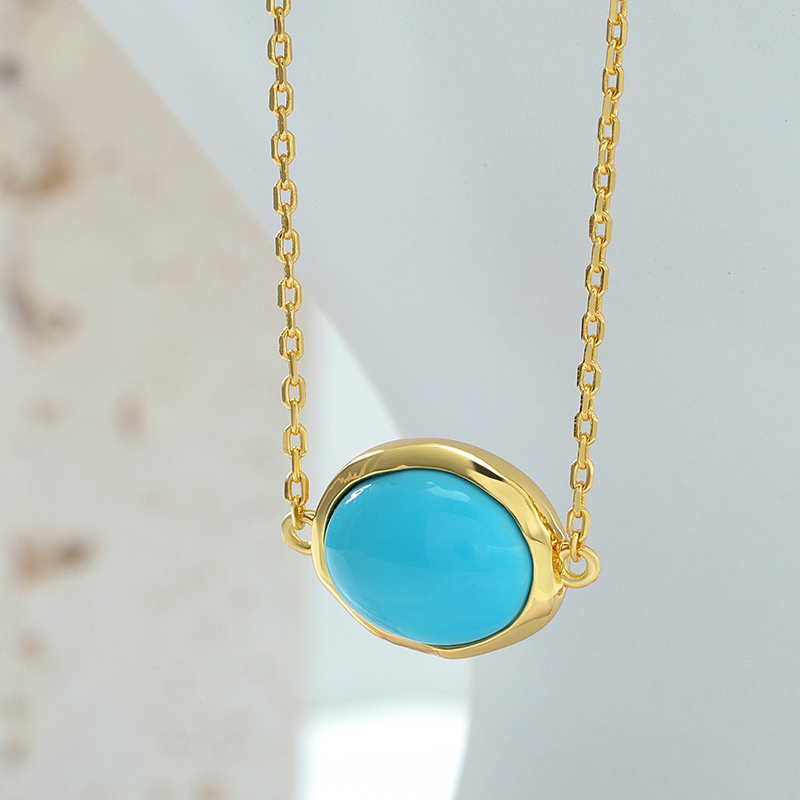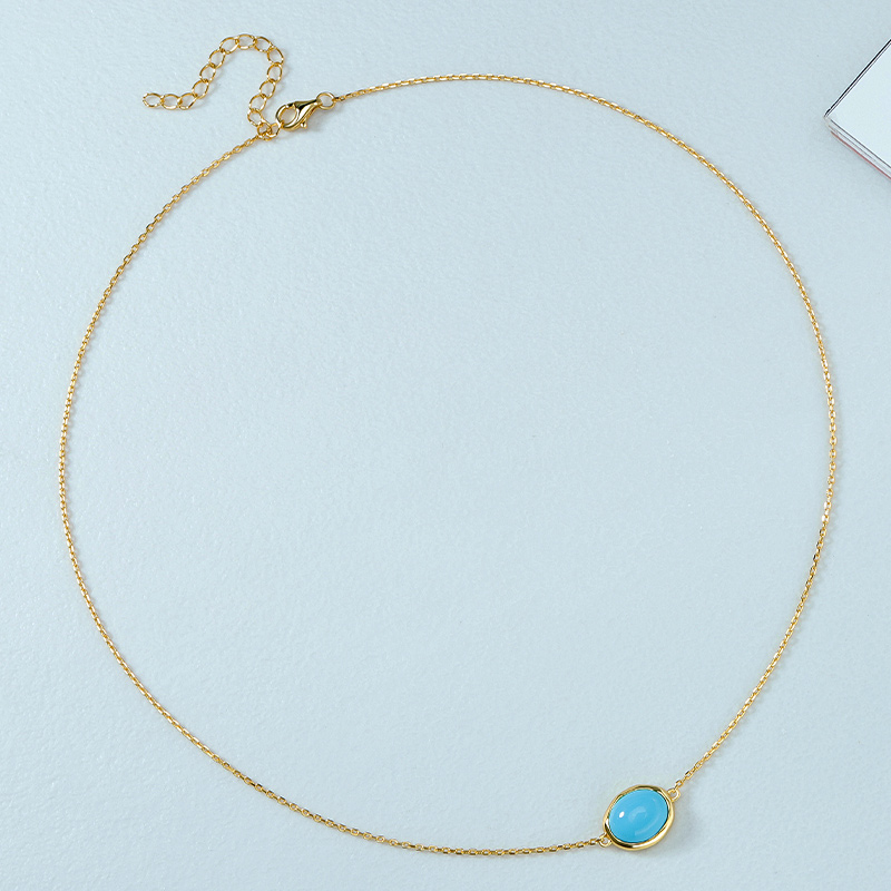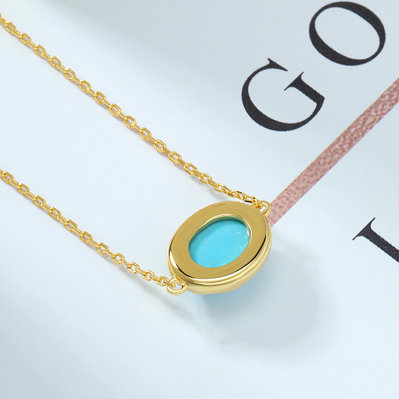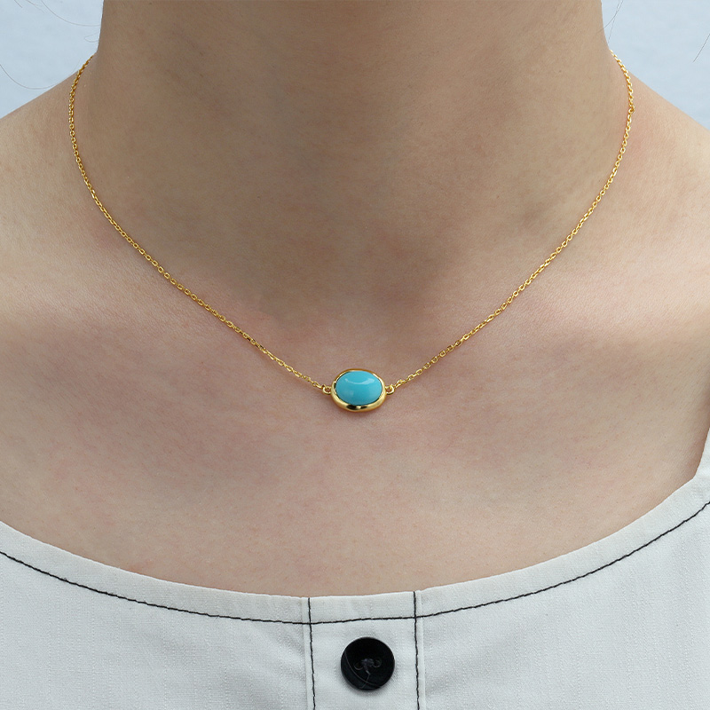 The Synthetic Turquoise Necklace is crafted in 925 sterling silver 18K gold plated with fine jewelry craft.
