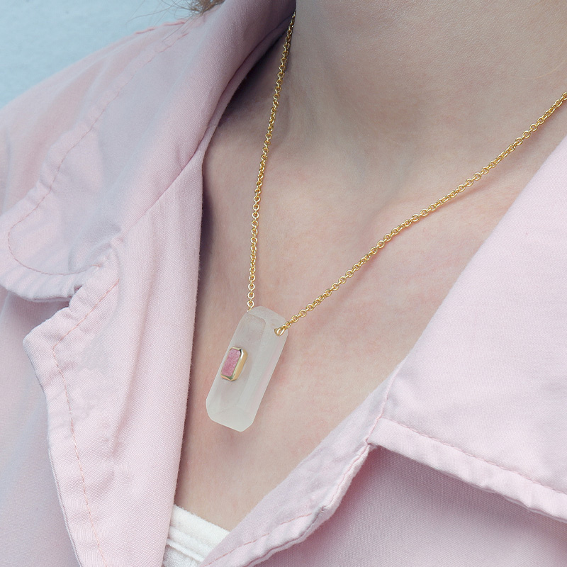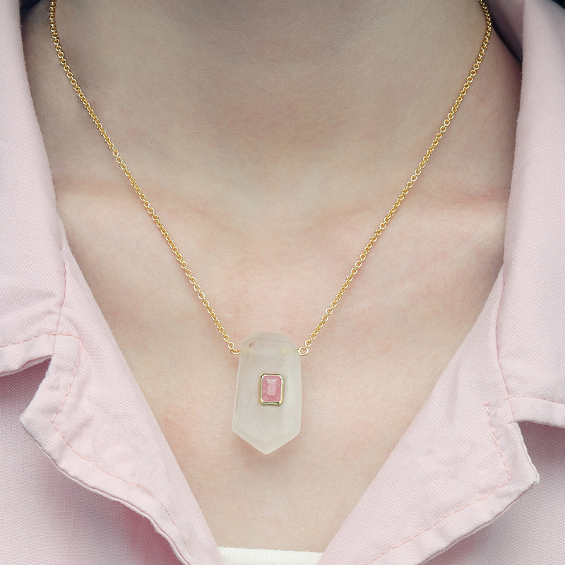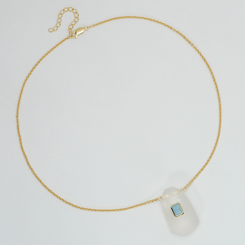 The Geometric Shape Energy Crystal Necklace is crafted in 925 sterling silver gold plated with fine jewelry craft.