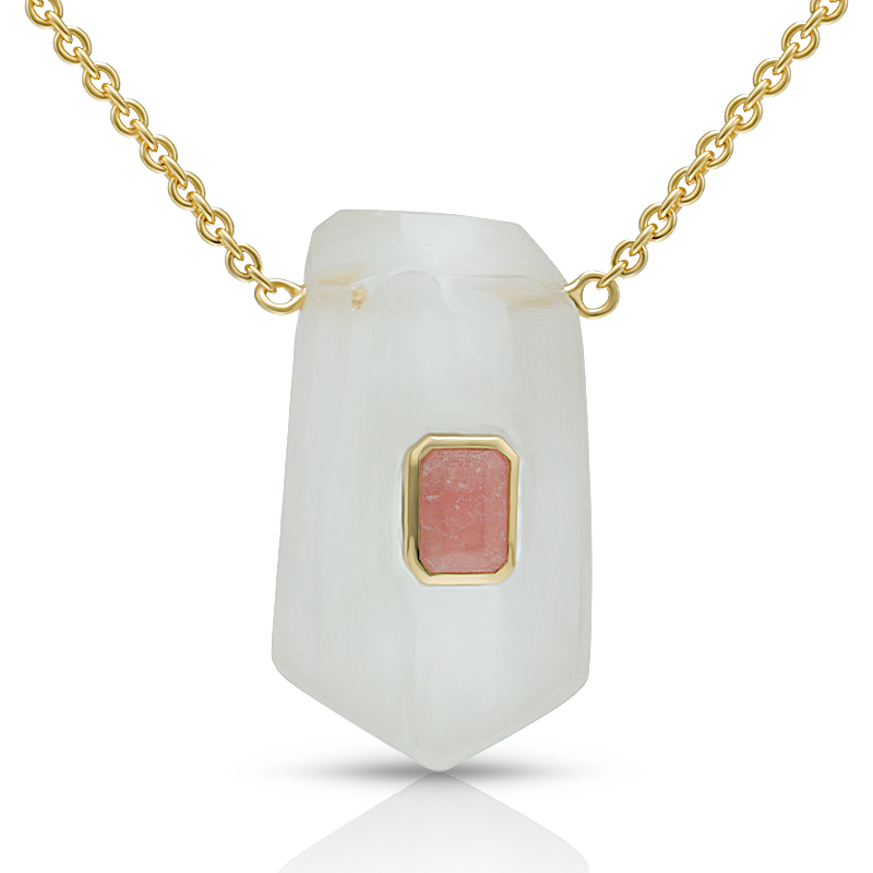 AvailableGeometric Shape Energy Crystal Necklace Bezel Set Rhodochrosite
