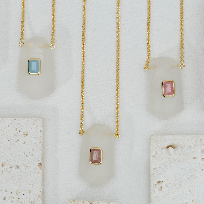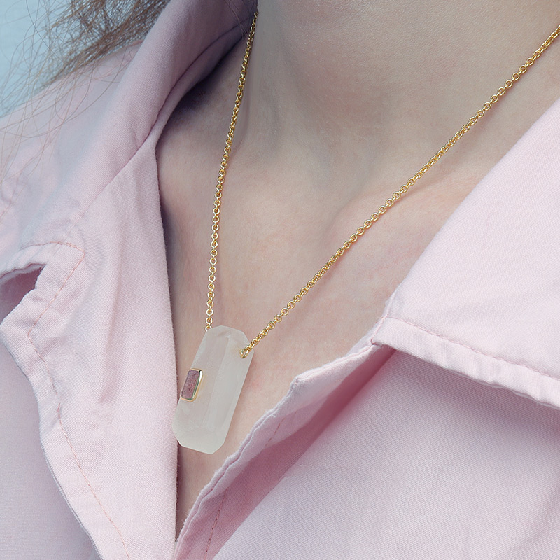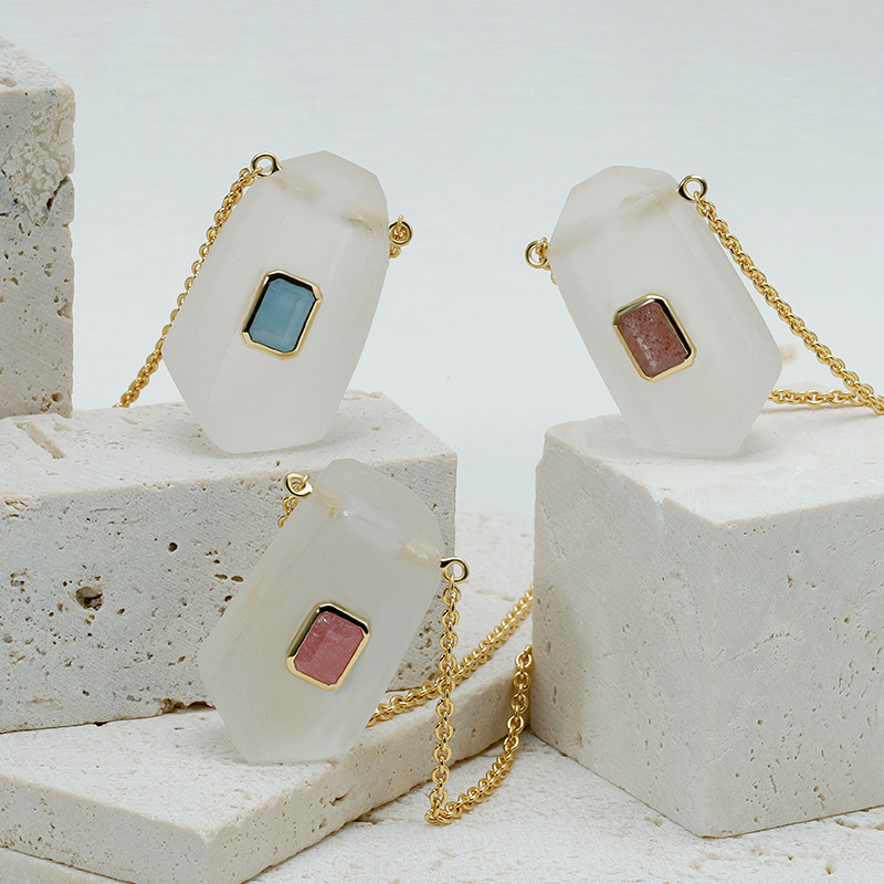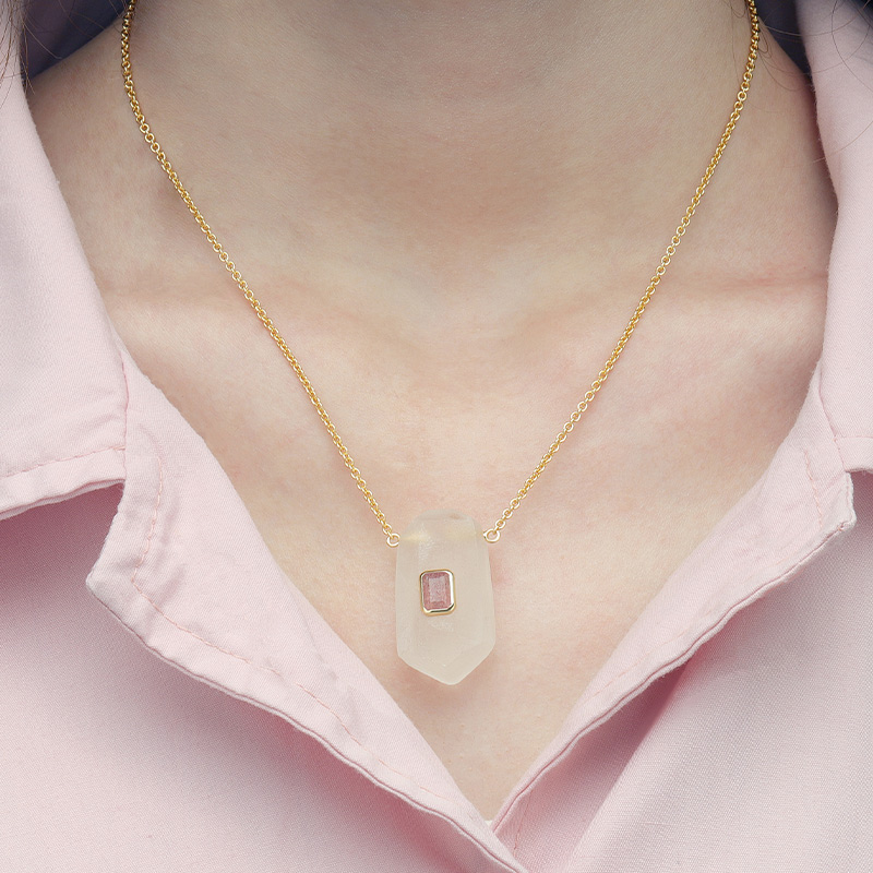 The Geometric Shape Energy Crystal Necklace is crafted in 925 sterling silver gold plated with fine jewelry craft.