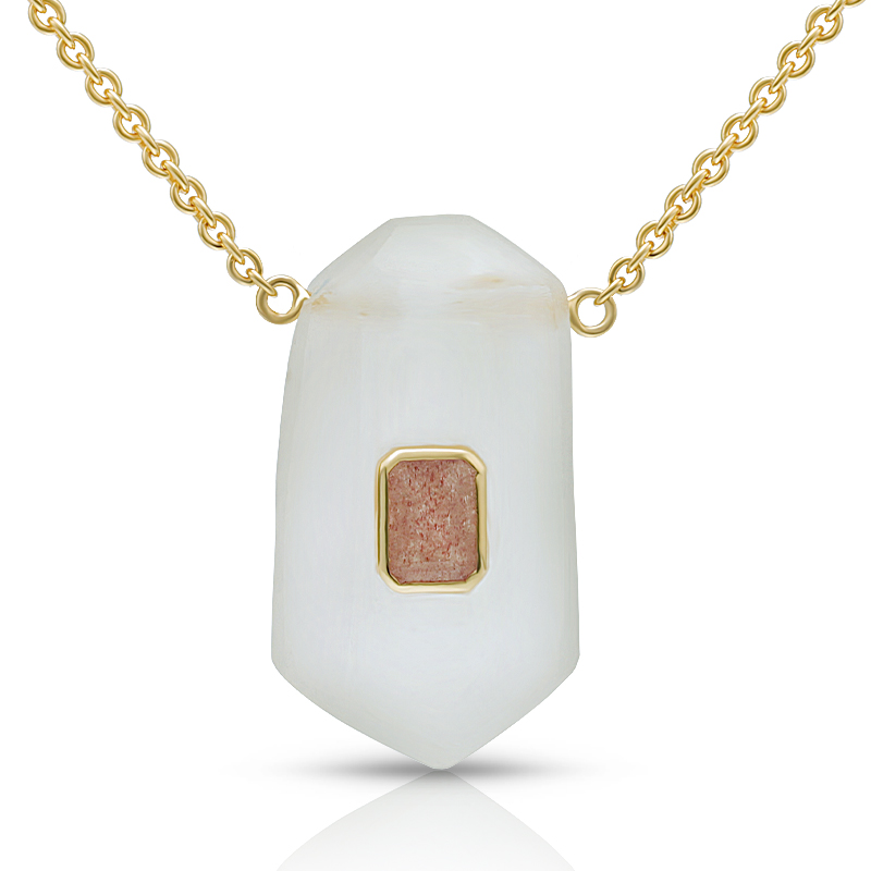AvailableGeometric Shape Energy Crystal Necklace Bezel Set Strawberry Quartz