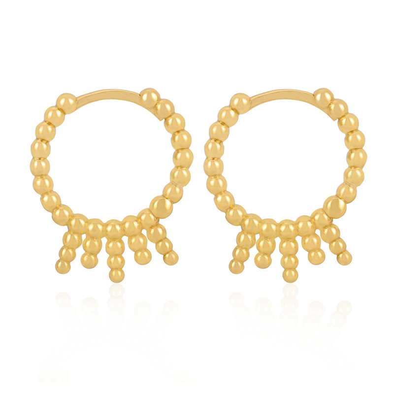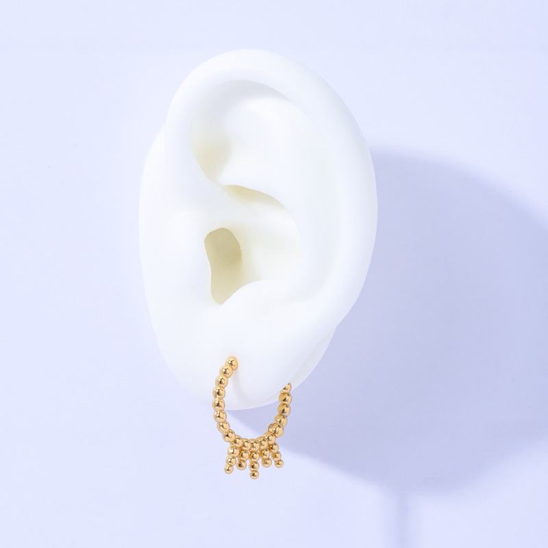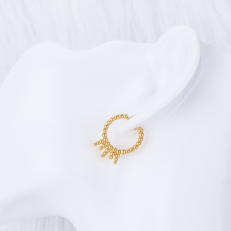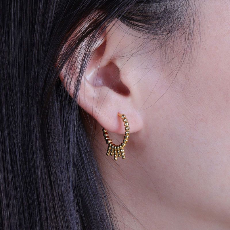 The gold bead earring is crafted in 925 sterling silver 18k yellow gold plated with fine jewelry craft.